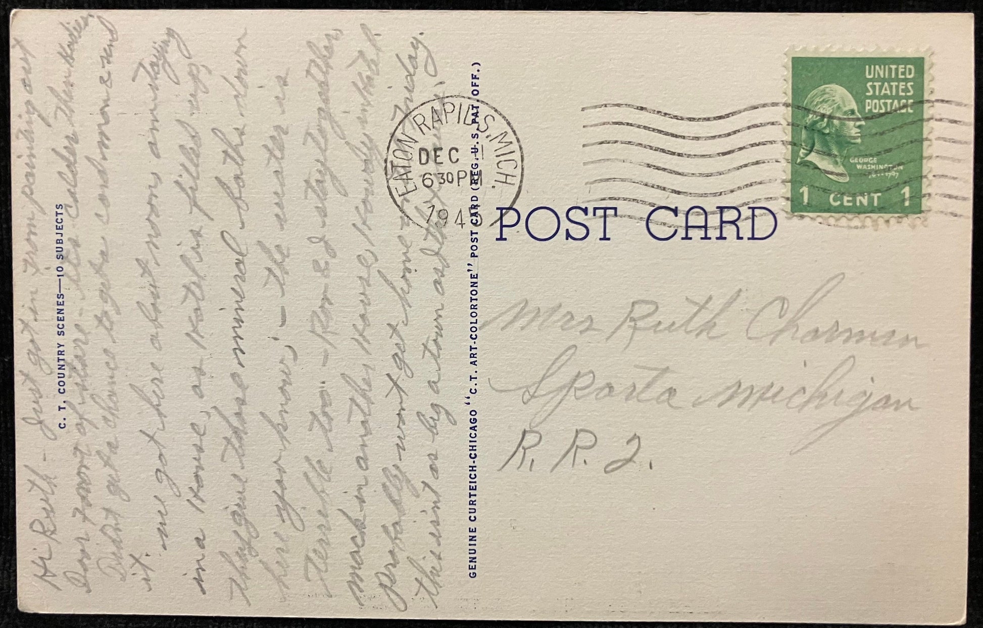 Mailed: Postmark in December of 1945 with a green one cent George Washington stamp