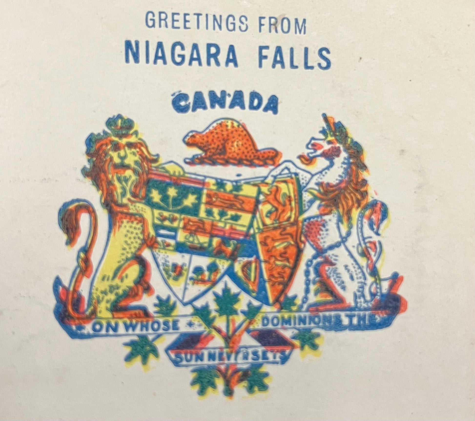 Greetings from Niagara Falls - Canada's Coat of Arms - Whirlpool Rapids, Single-arch, Double-track Steel Bridge over Niagara River - Vintage Postcard