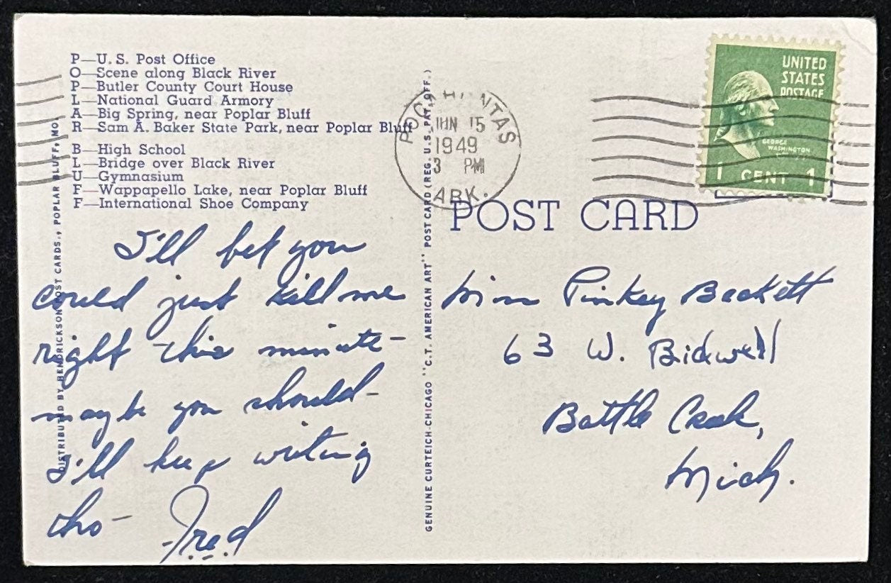 Mailed: Posted on June 15th, 1949 with a green 1 cent George Washington stamp