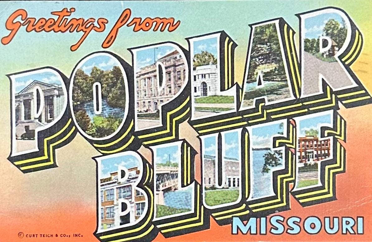 Greetings from Poplar Bluff Missouri