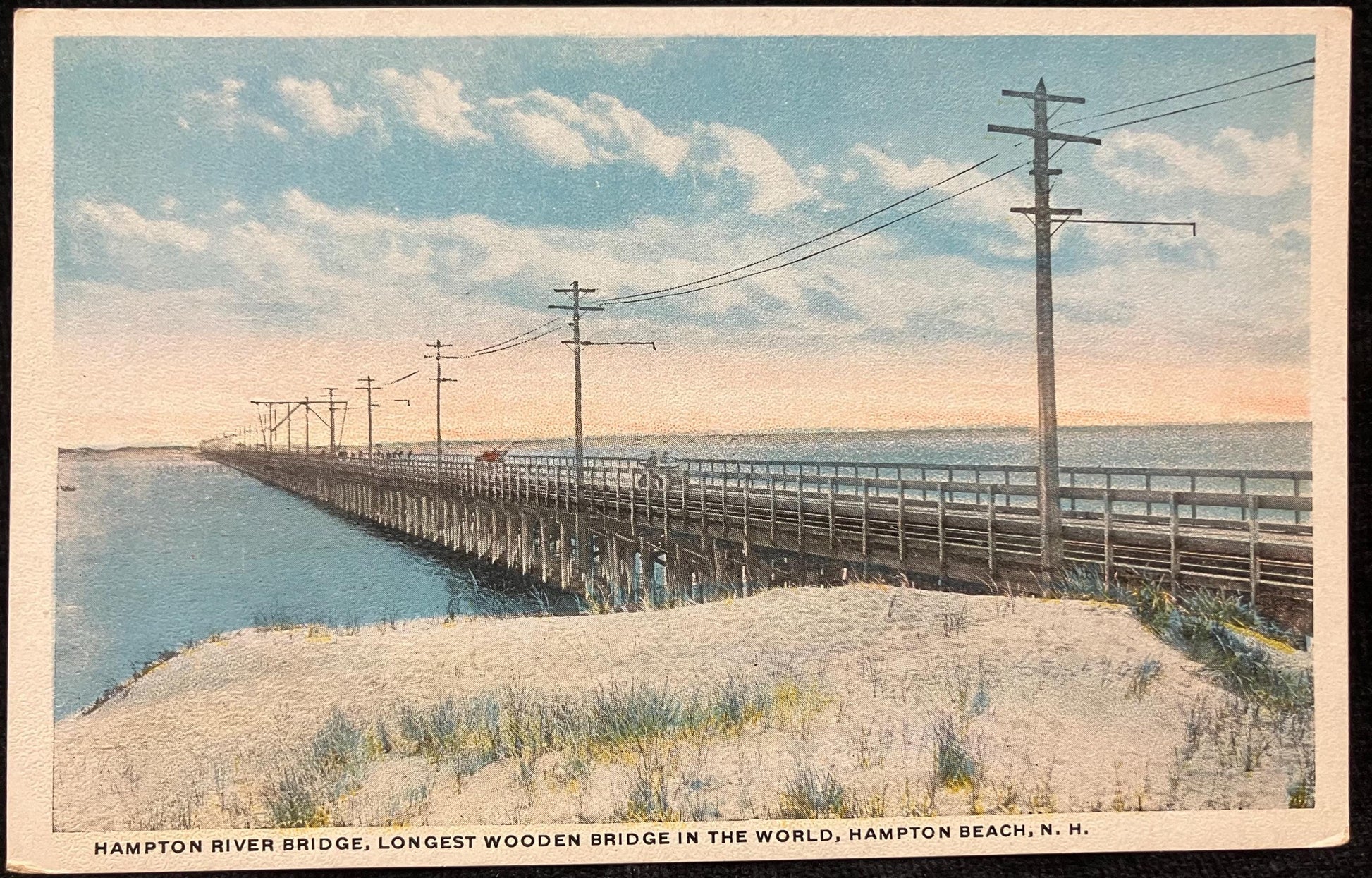 Hampton River Bride, Longest Wooden Bridge in the World, Hampton Beach, New Hampshire - Vintage Bridge Postcard