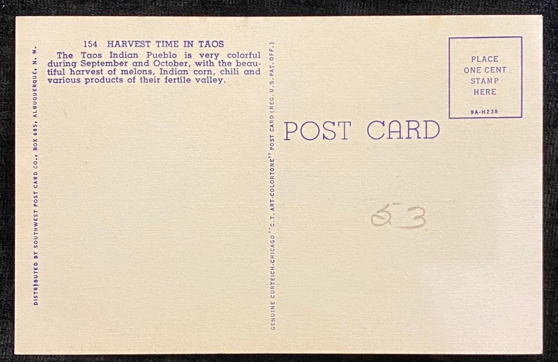 Harvest Time - Taos, New Mexico - 1939 Linen Postcard