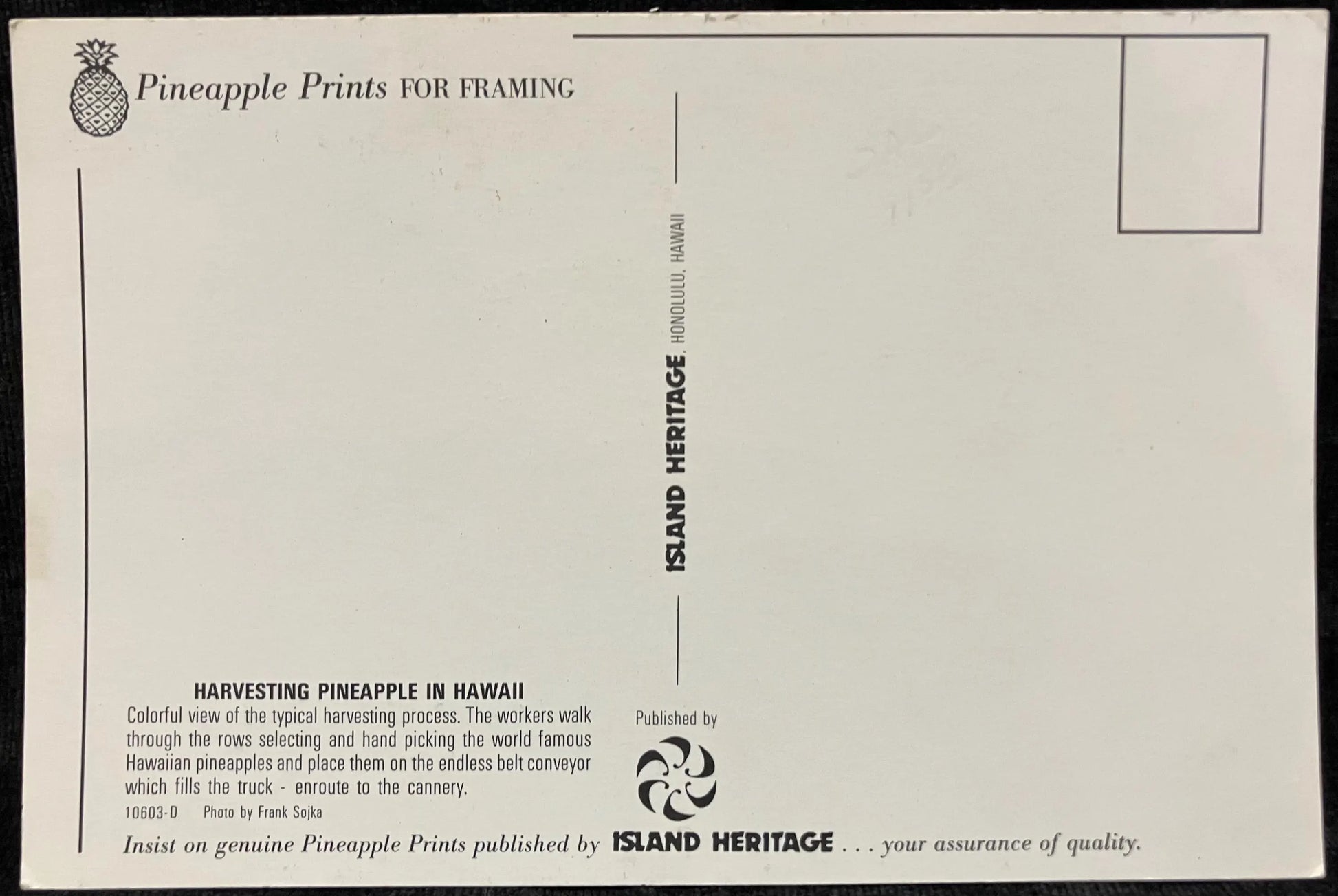 Harvesting Pineapple in Hawaii - Photo: Frank Fojka - Vintage Postcard