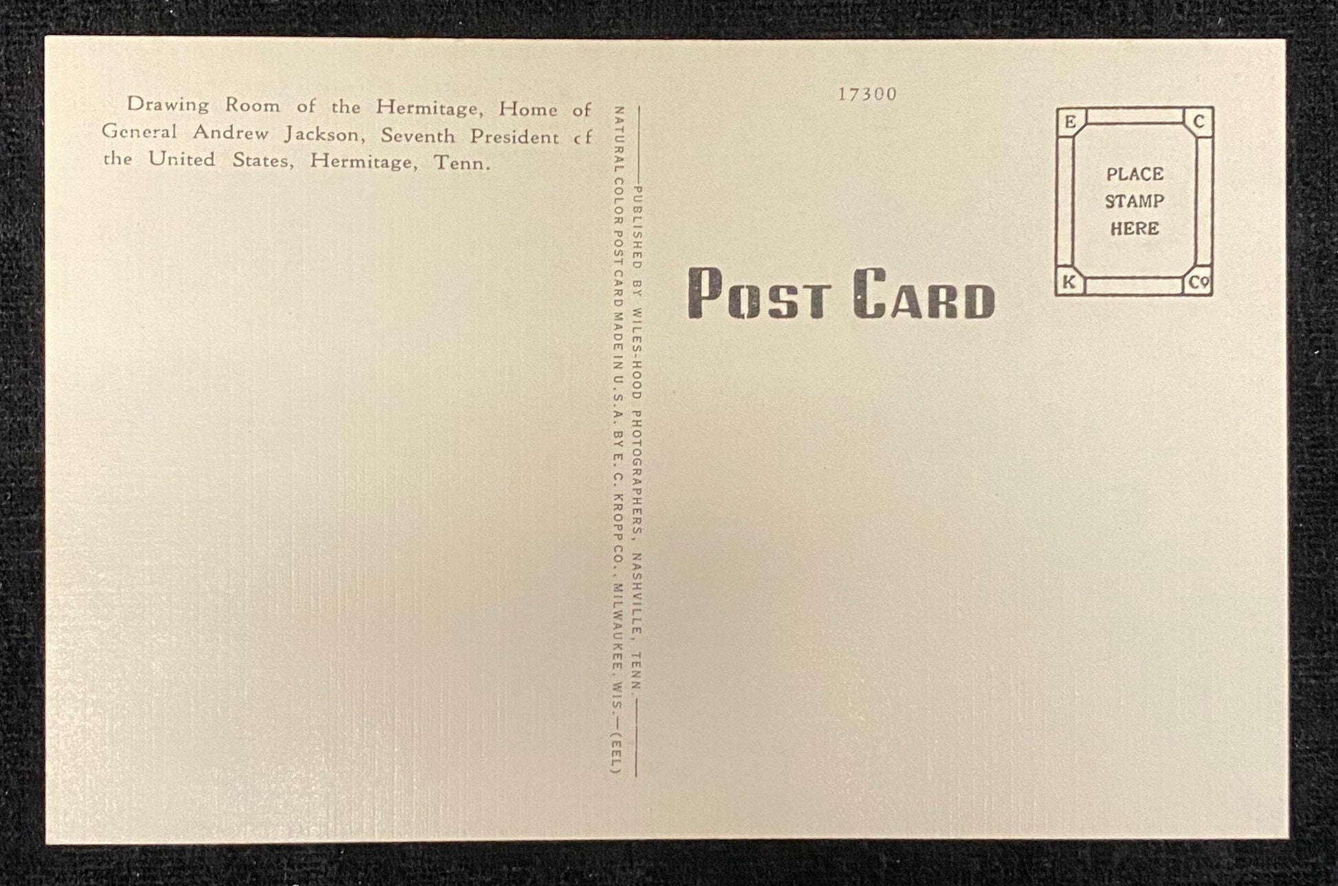 Back: "Drawing Room of Hermitage, Home of General Andrew Jackson, Seventh President of the United States, Hermitage, Tenn."