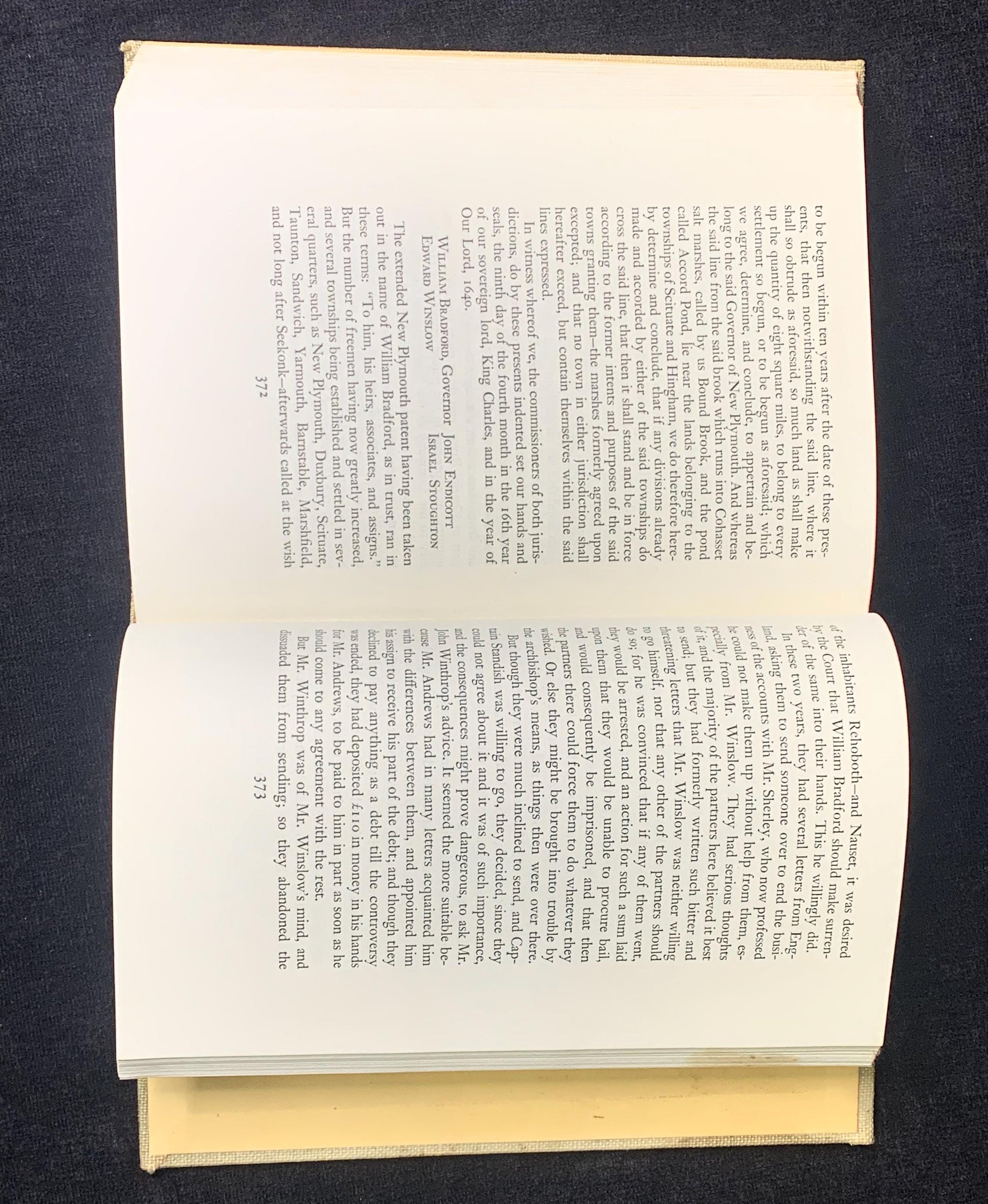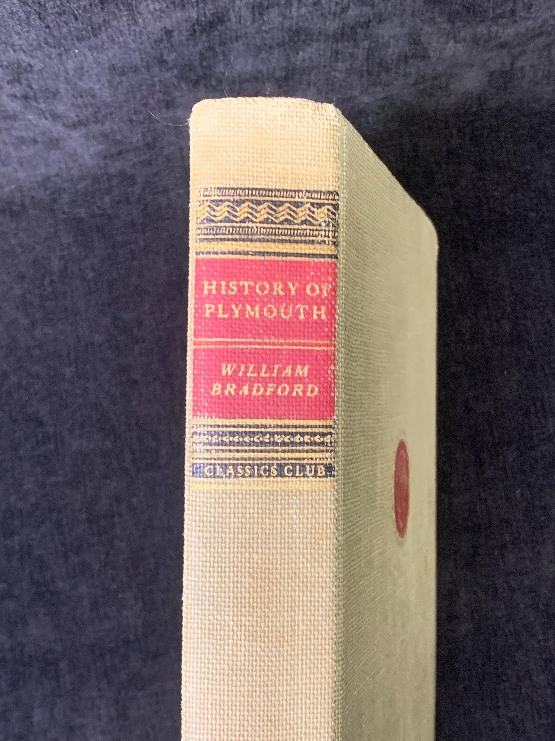 This is a first-edition publishing of William Bradford's "History of Plymouth". The book was published in the United States in 1948 by the Walter J. Black Publishing Company. The book is in fairly good condition, aside from some light staining and wear on the front and back covers. The binding of this book is still.