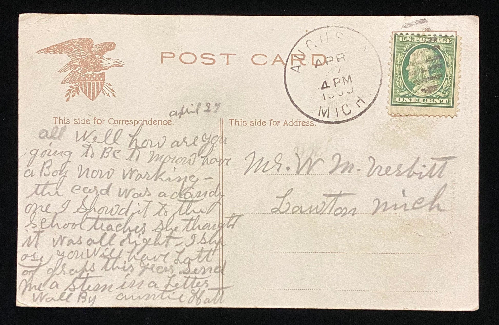 Mailed. Postmark Apr 27, 1909. Green, one cent stamp