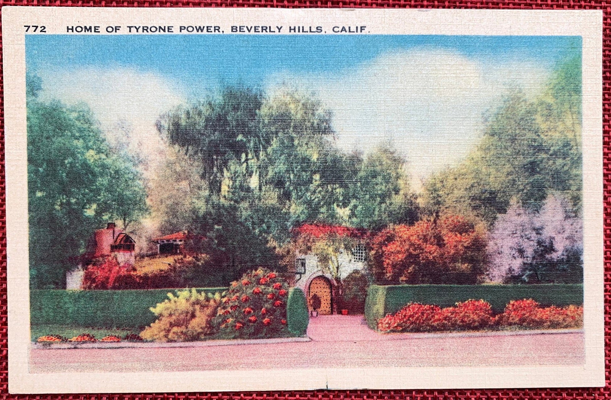 Home of Tyrone Power - Beverly Hills, California - Vintage Linen Postcard