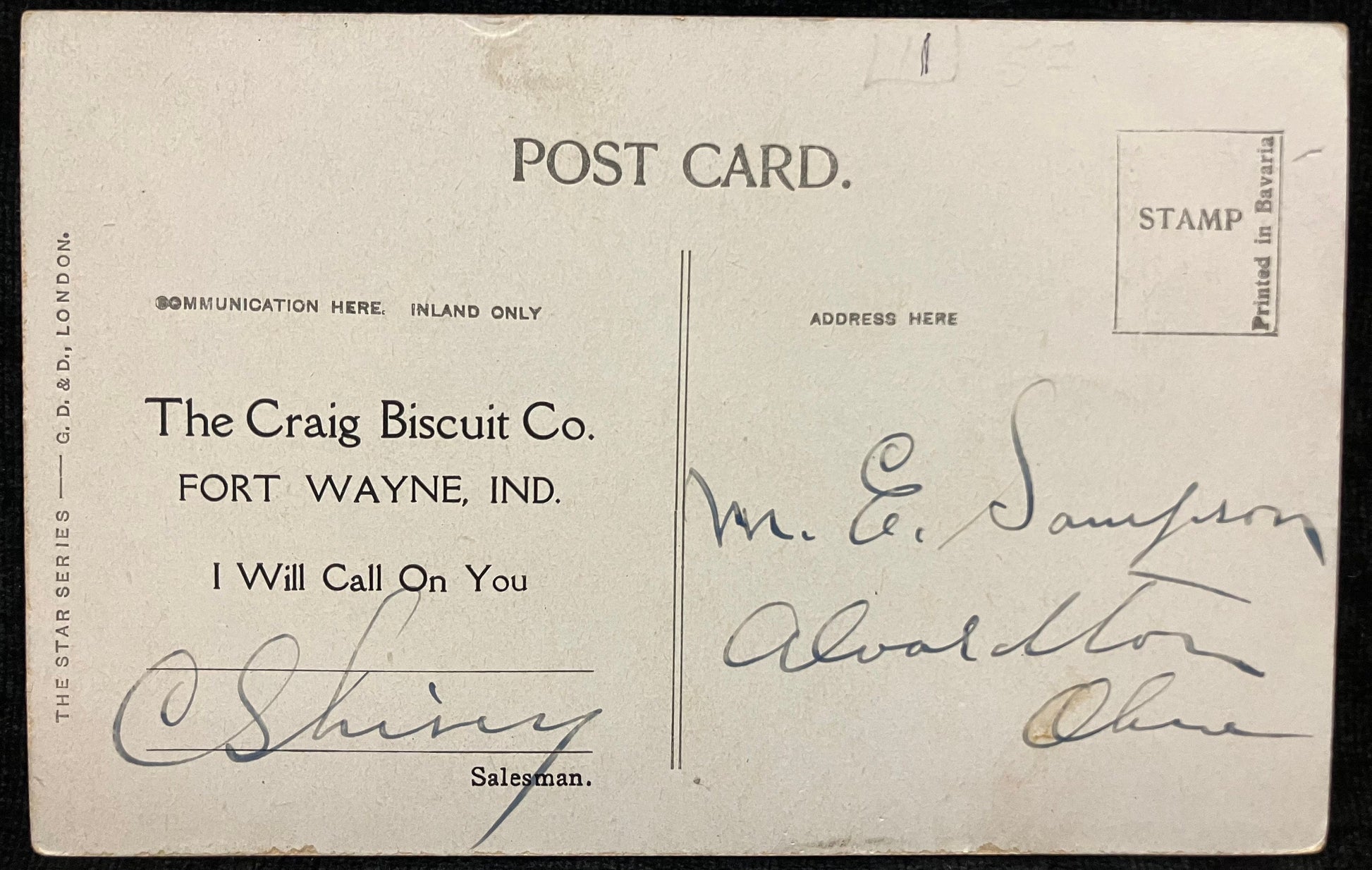 Back: The Craig Biscuit Co. Fort Wayne, Ind. I Will Call on You