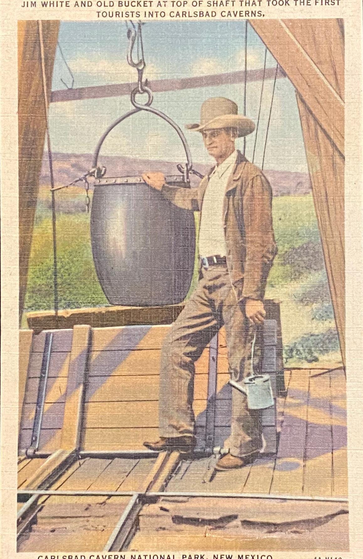Jim White - Old Bucket - Carlsbad Caverns, New Mexico - 1934 Linen Postcard