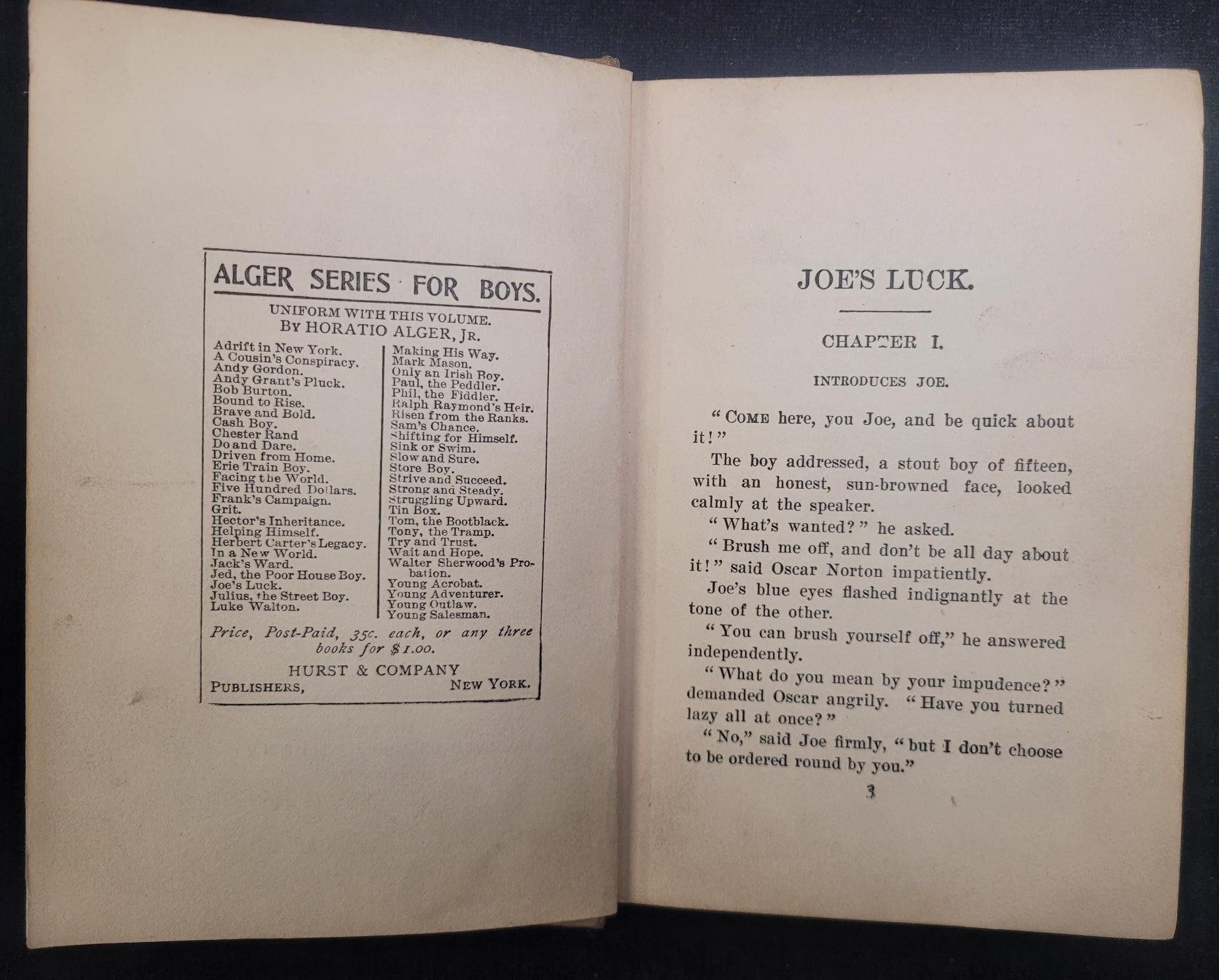 Joe's Luck or Always Wide Awake - by Horatio Alger, Jr - Published by Hurst and Co. - Horatio Alger Series for Boys - 1908