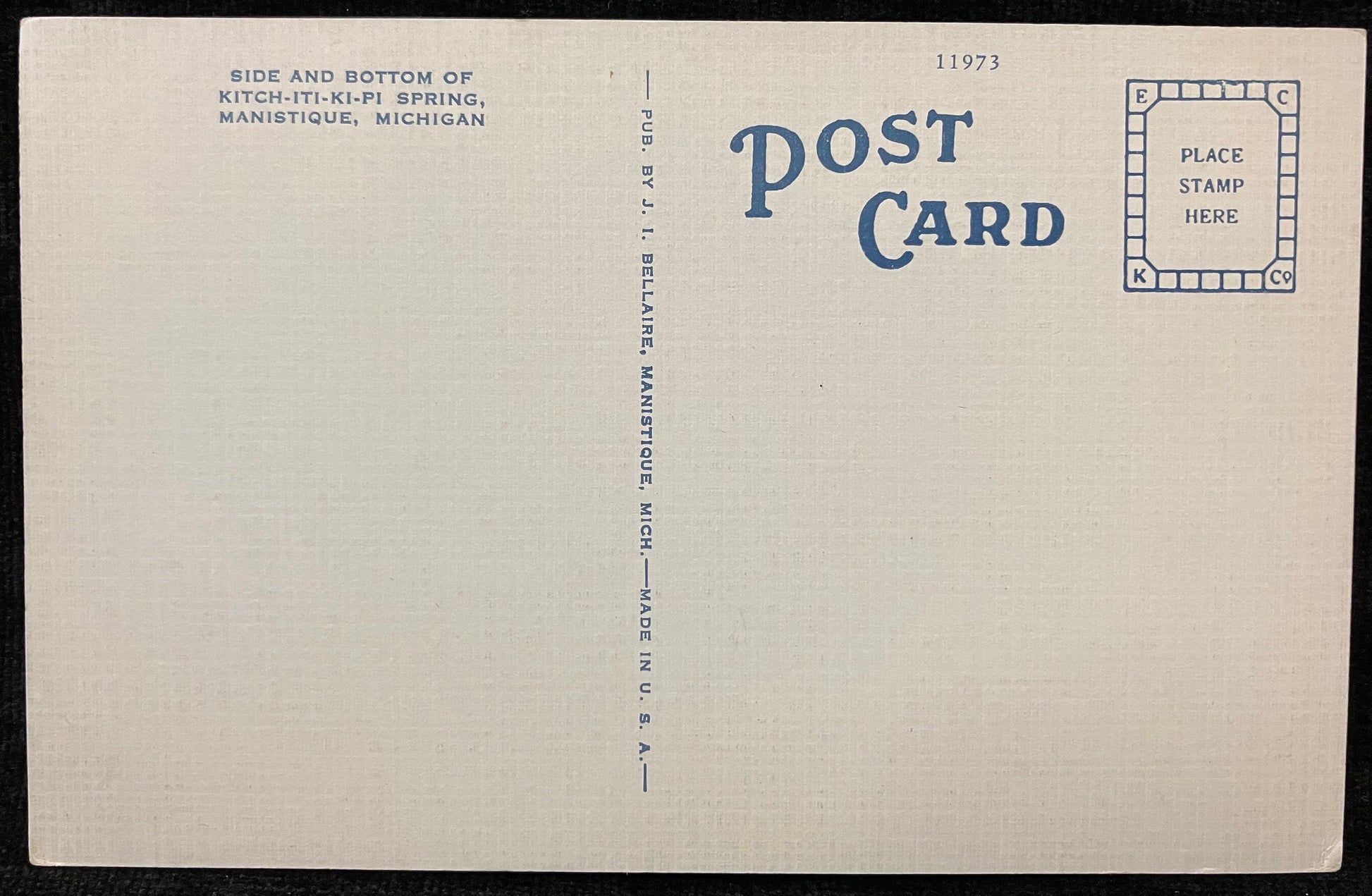 On front: A photo of Kitch-Iti-Ki-Pi Spring in Manistique, Michigan