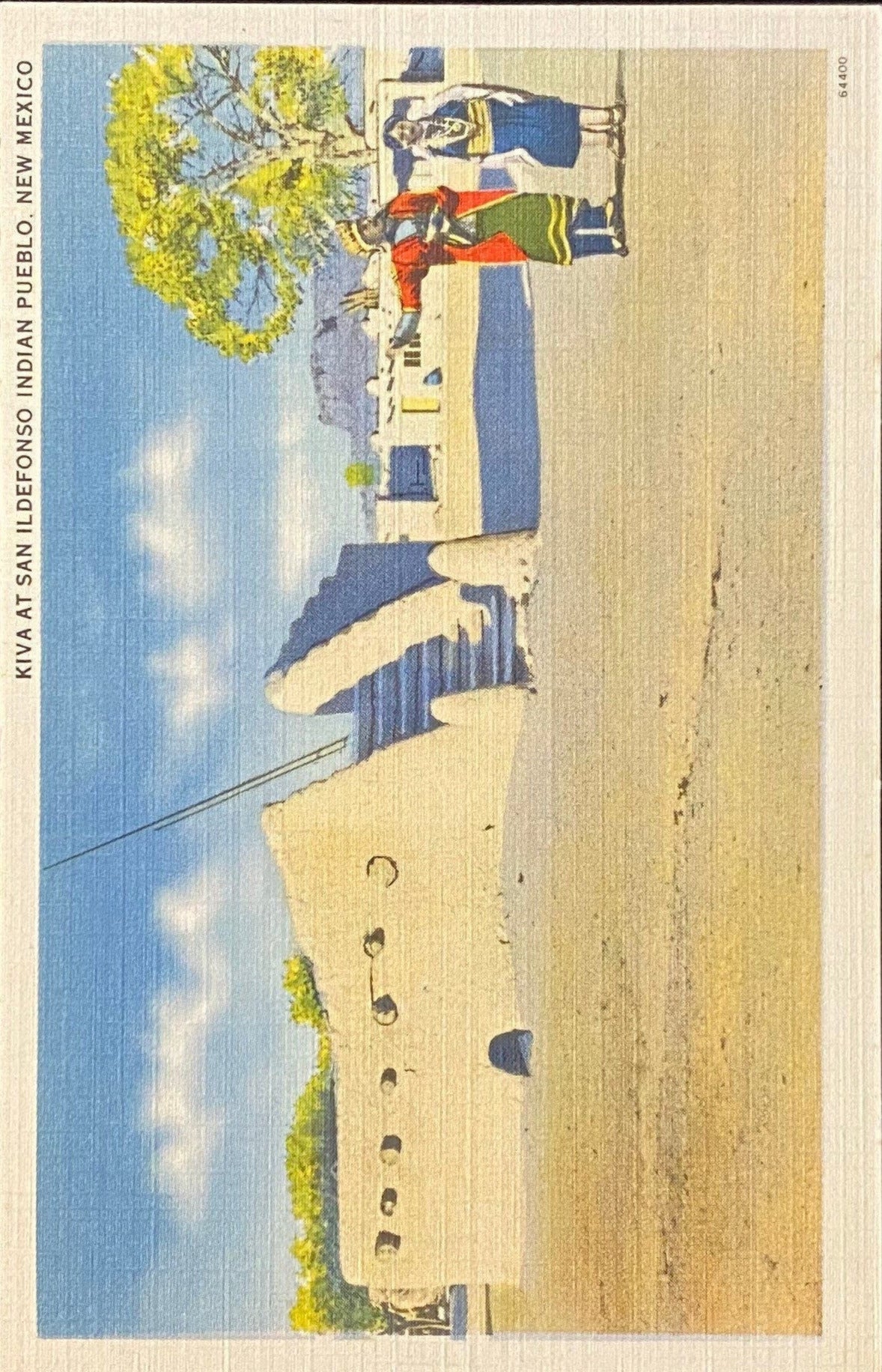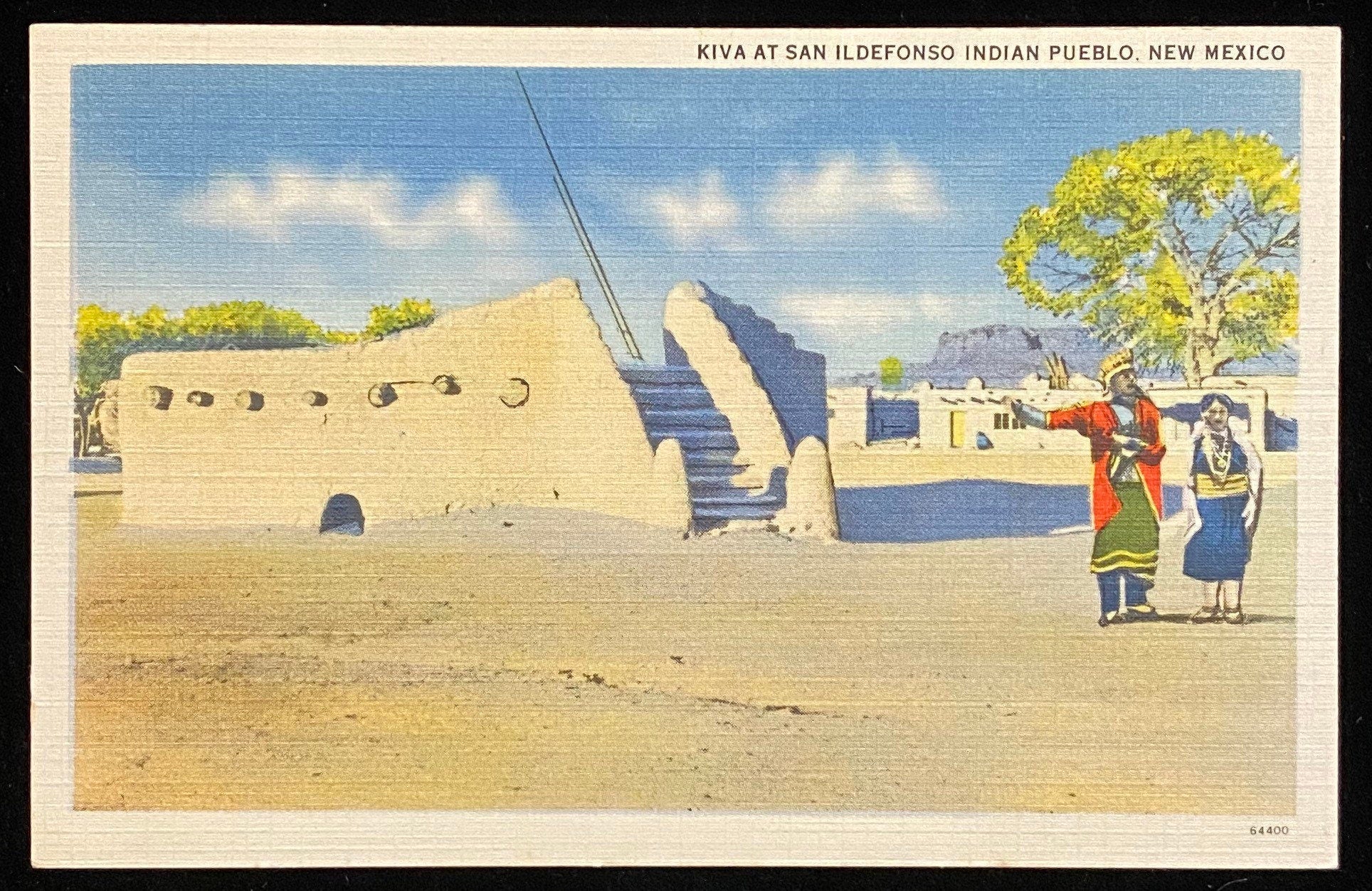 Kiva at San Ildefonso Indian Pueblo, New Mexico - 1940s Linen Postcard