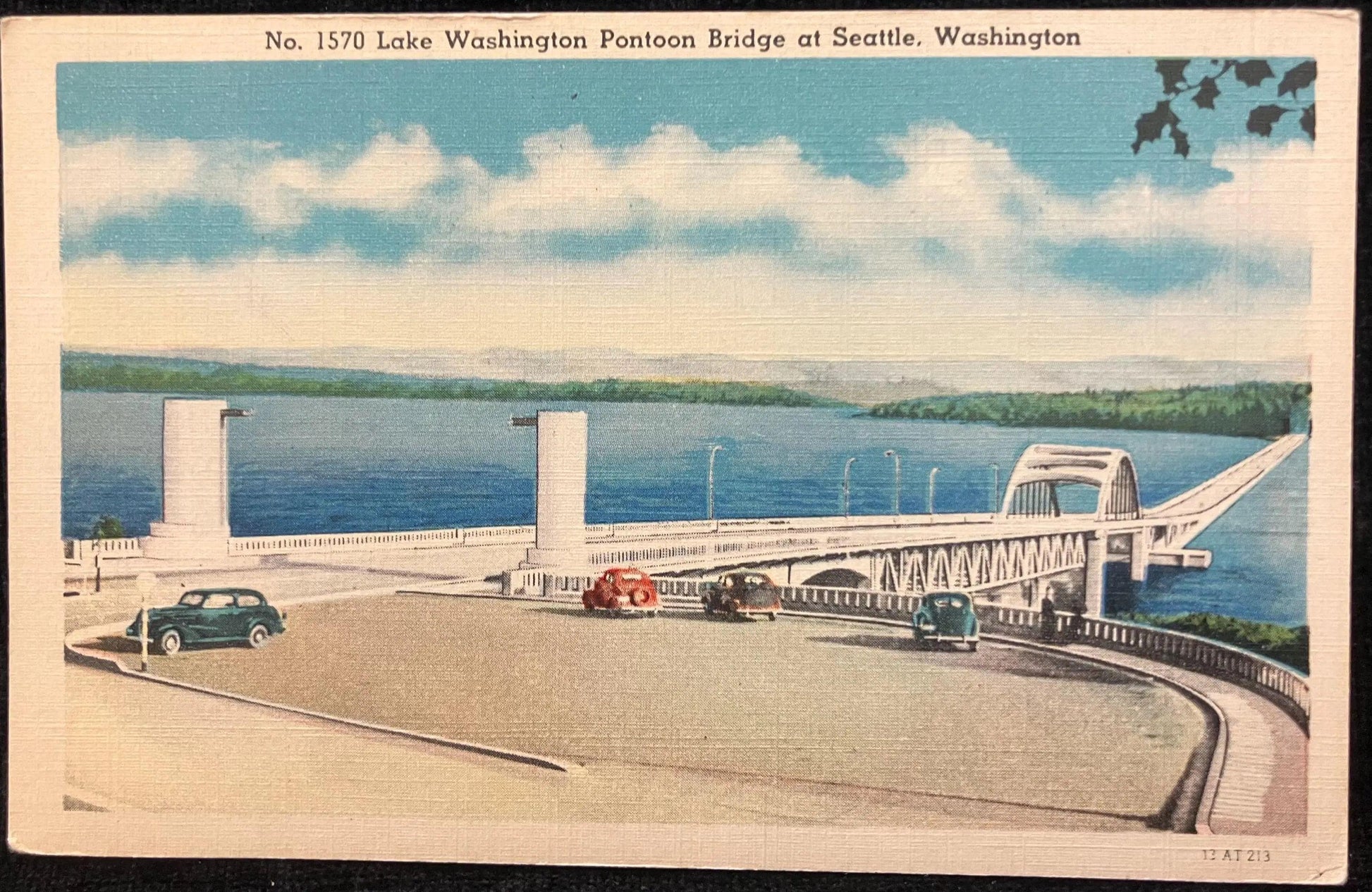 Lake Washington Pontoon Bridge at Seattle, Washington - Vintage Bridge Postcard