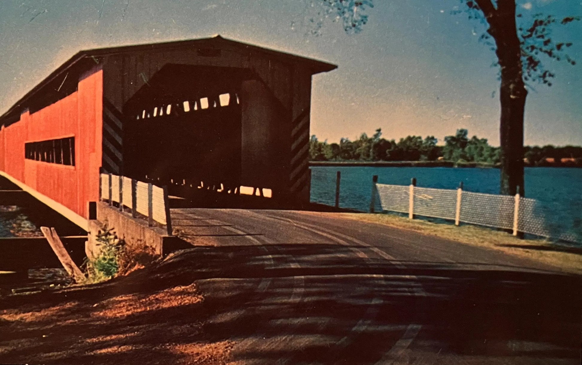 Langley Bridge over St. Joseph River near Centreville, Michigan - Vintage Covered Bridge Postcard