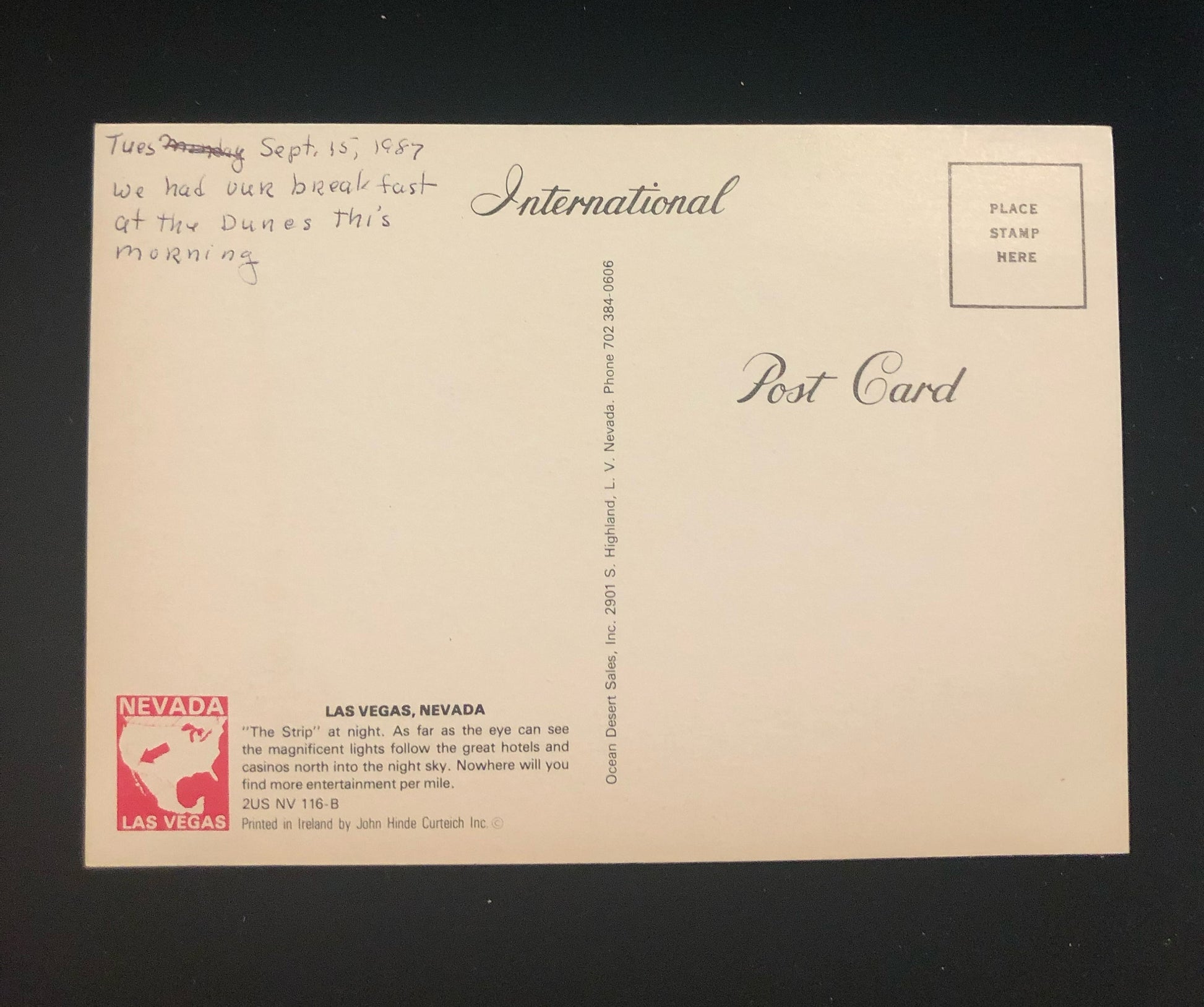 Back information: The Strip At Night. As far as the eye can see the magnificent lights follow the great hotels and casinos north into the night sky. Nowhere will you find more entertainment per mile.