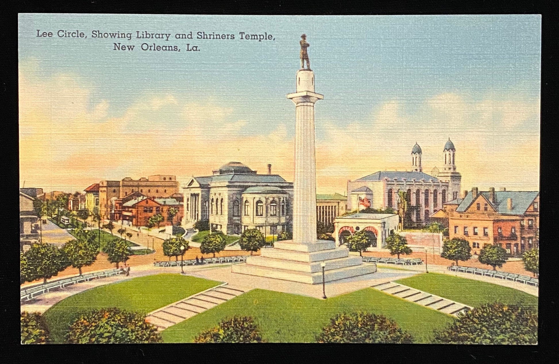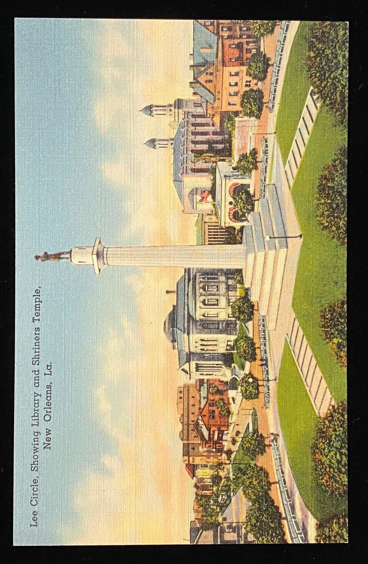 Lee Circle, Showing Library and Shriners Temple, New Orleans, Louisiana - 1937 Linen Postcard