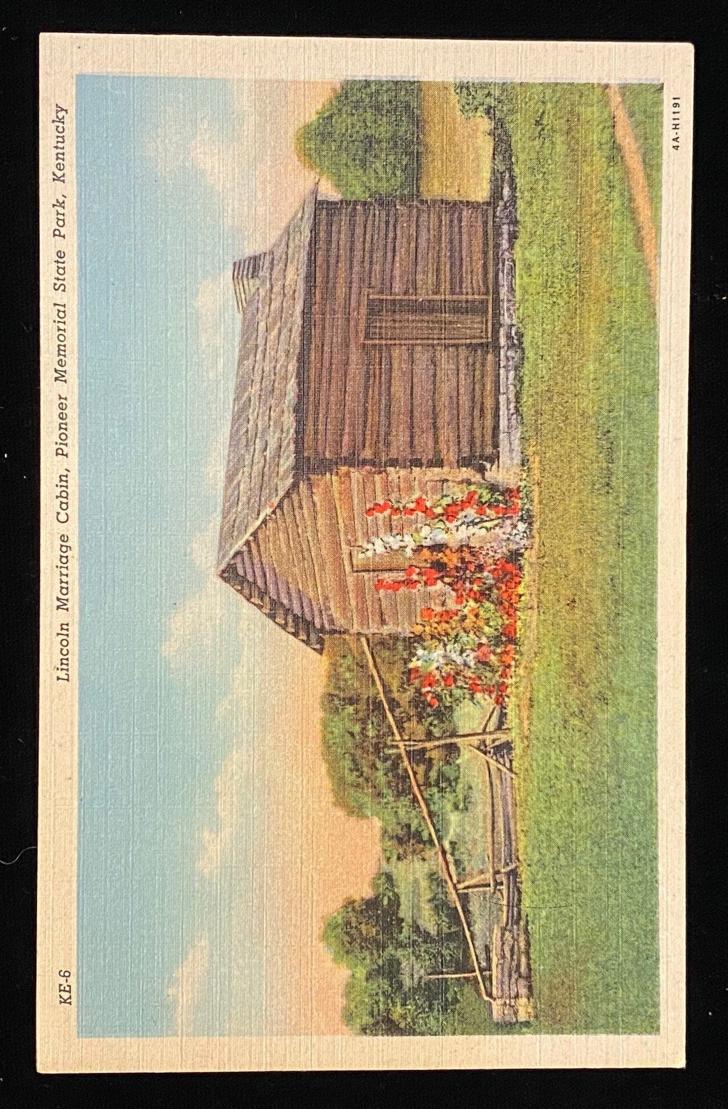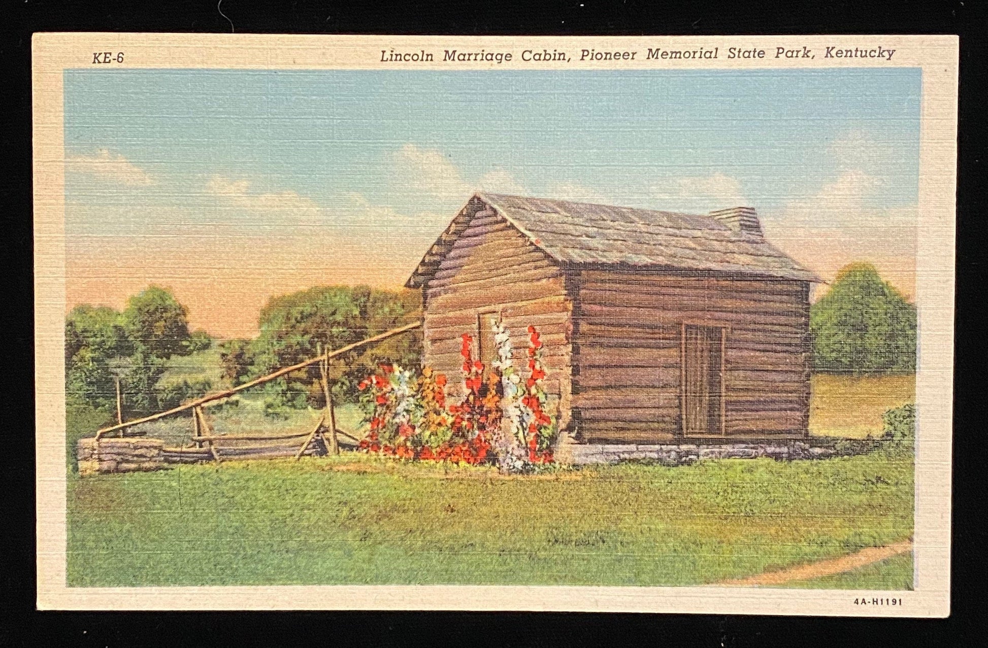 Lincoln Marriage Cabin - Pioneer Memorial State Park - Kentucky - 1930s Linen Postcard