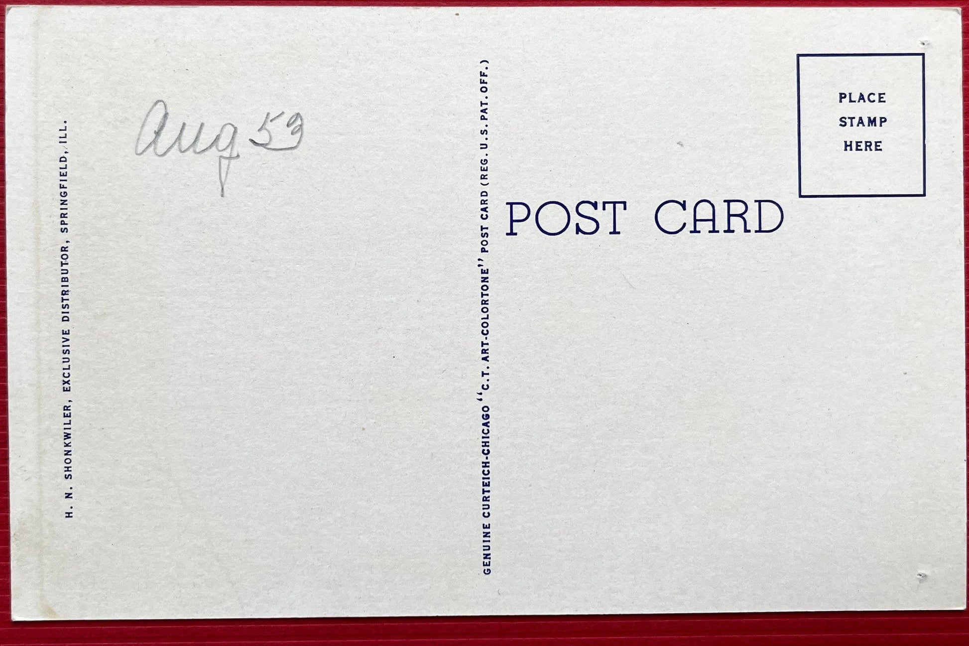 This Cur Teich Co. linen postcard depicts the Lincoln Tomb at sunset in Springfield, Illinois. The tomb is the resting place for Abraham Lincoln, his wife, and three of his sons. This is the perfect postcard for any Abraham Lincoln fans!