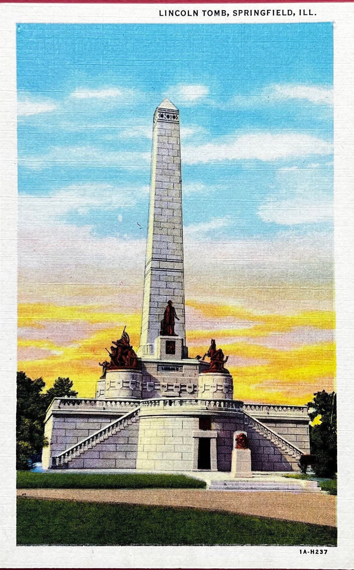 Lincoln Tomb - Springfield, Illinois - 1950s Linen Postcard