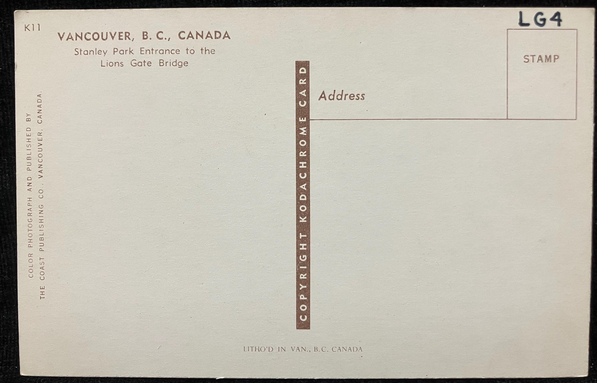 Lions Gate Bridge - Vancouver, B.C., Canada - Made in Canada - Vintage British Columbia Bridge Postcard