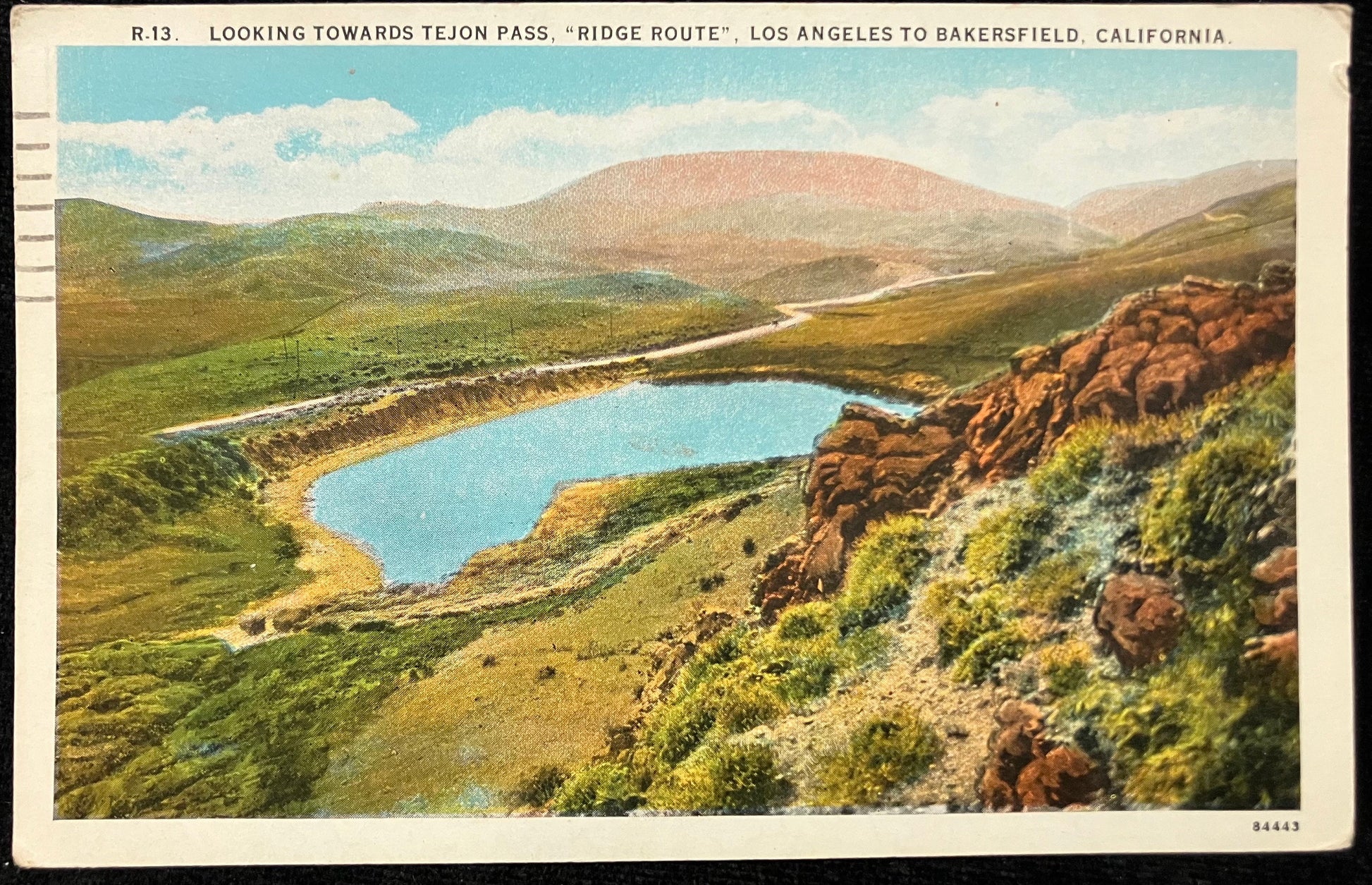 On front: Looking Towards Tejon Pass, “Ridge Route”, Los Angeles to Bakersfield, California.