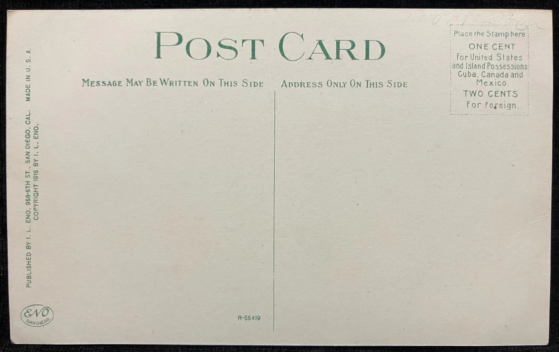 Looking West on Prada, Panama-California Exposition, San Diego, 1915. - Vintage San Diego Postcard