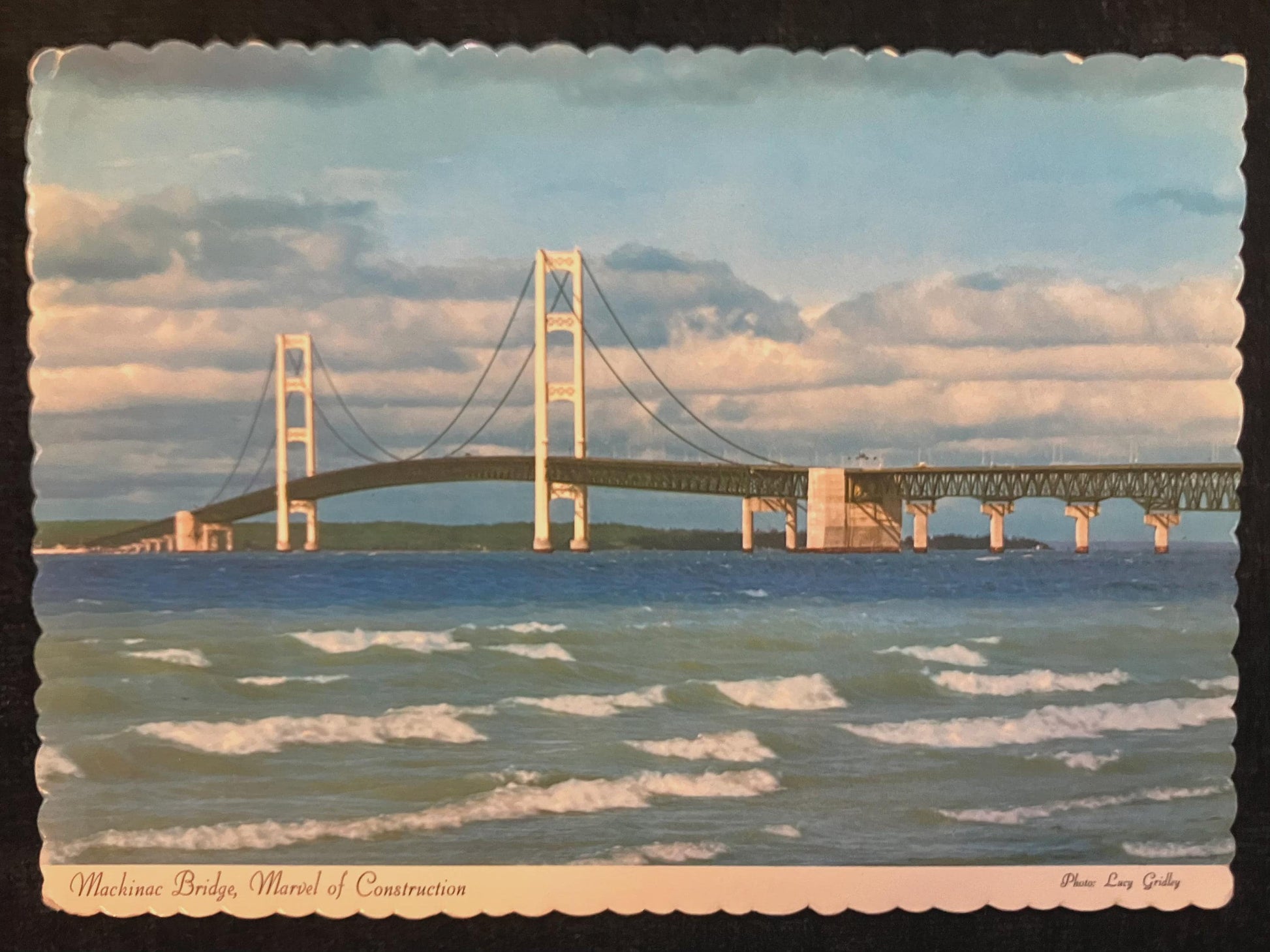 Mackinac Bridge, Marvel of Construction, Michigan - Photo by Lucy Gridley - Vintage Postcard