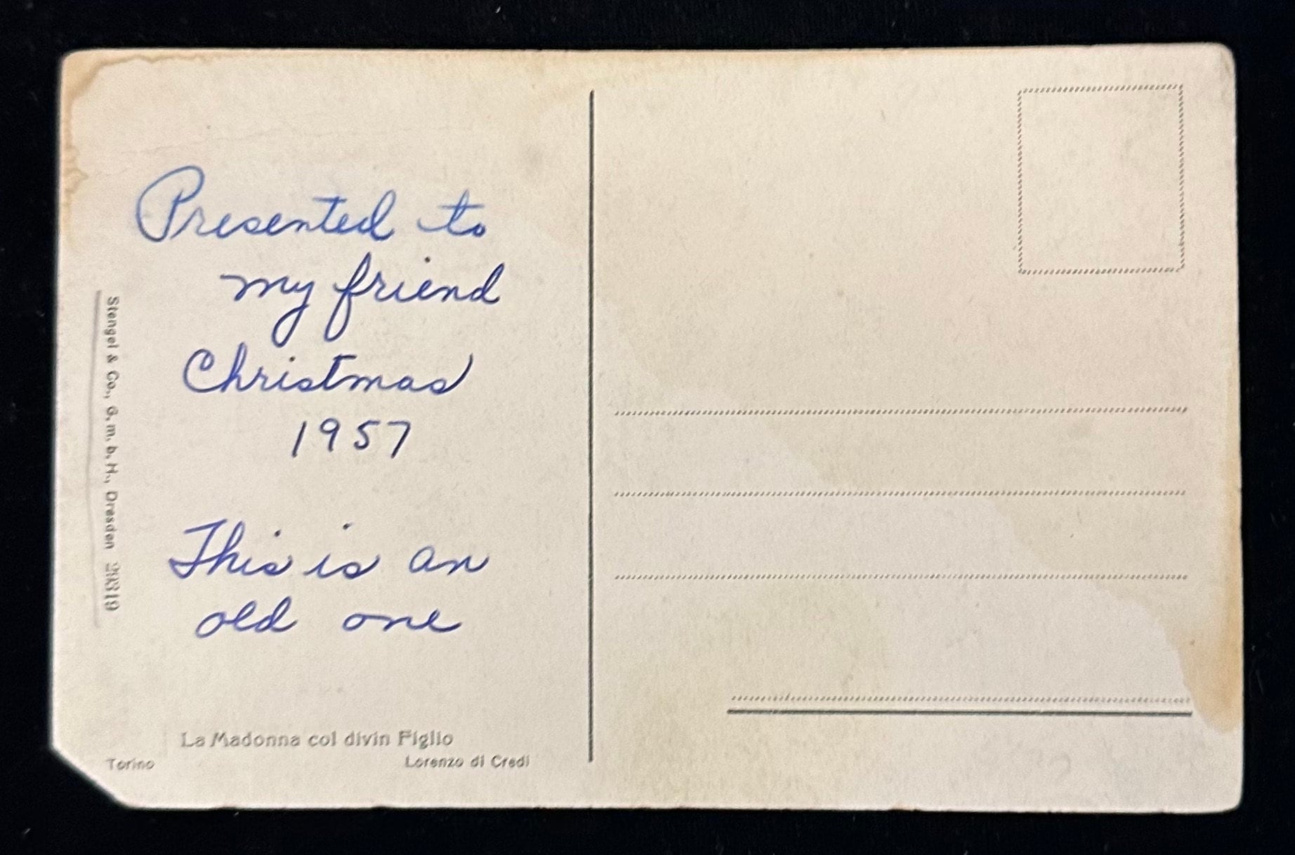 Unmailed: has writing on the back that is dated 1957, no visible stamping or postage on the postcard