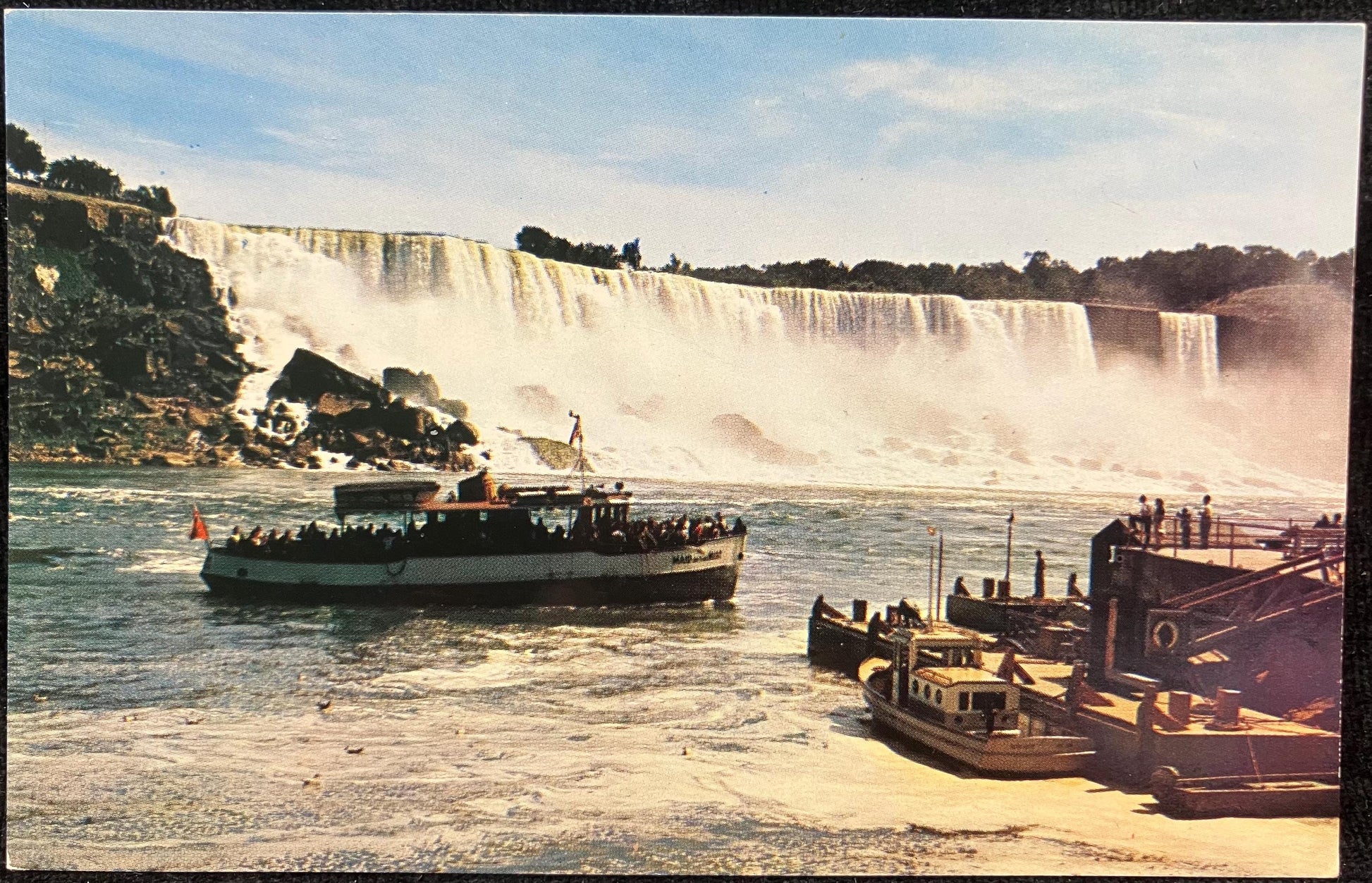 Back: "MAID OF THE MIST" taking Visitors on one of her regular trips to the Falls taken from Niagara Falls, Canada