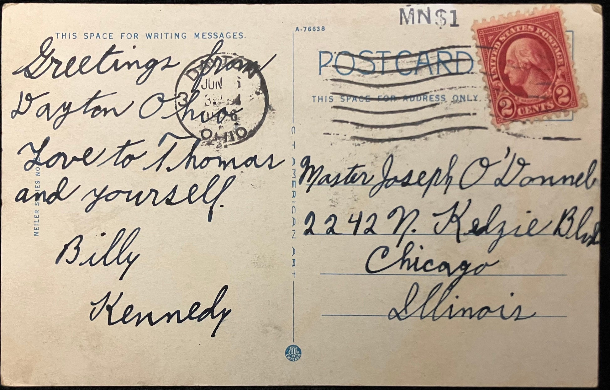 Mailed: Postmarked in 1926 with a red two-cent George Washington stamp