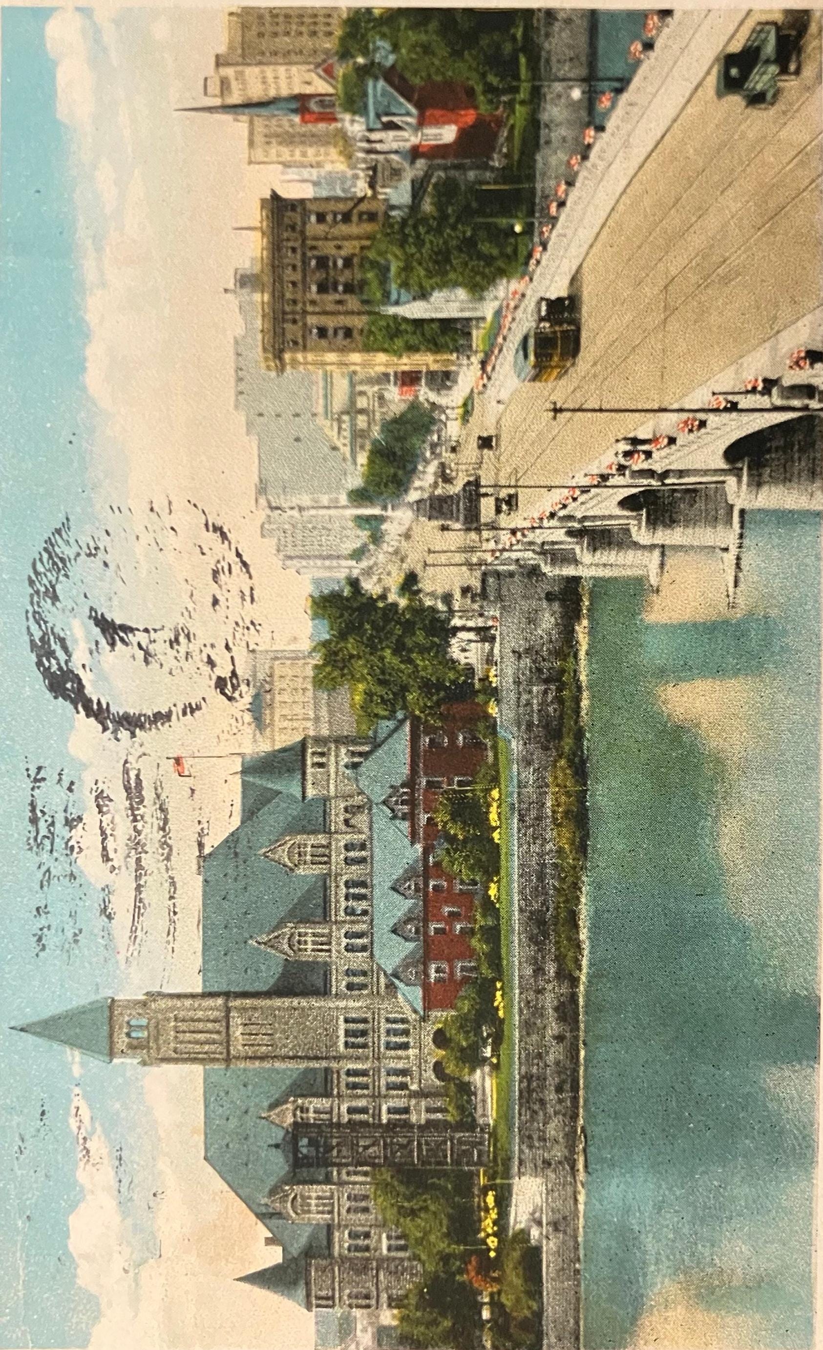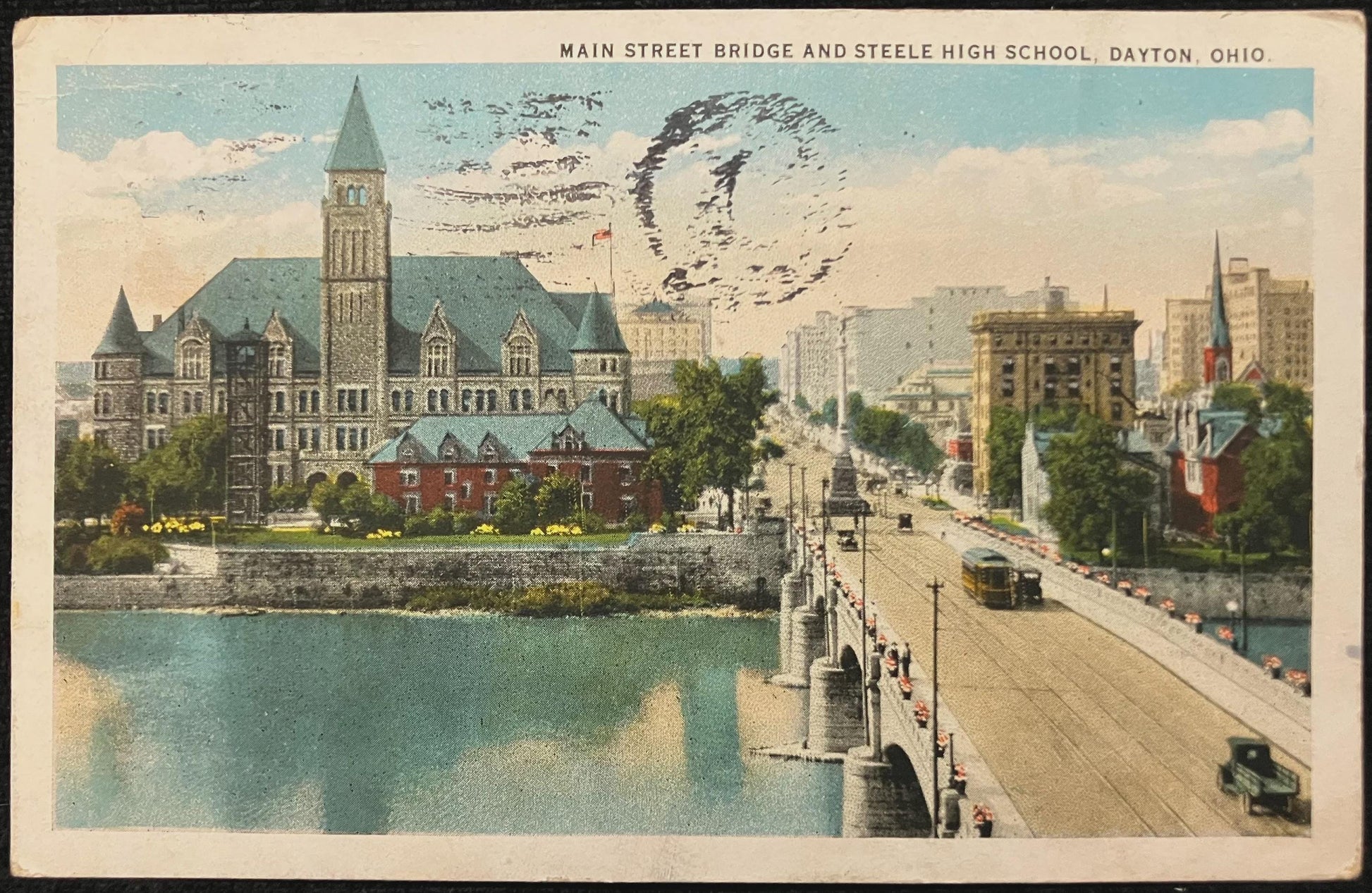 Main Street Bridge and Steele High School, Dayton, Ohio - Vintage Bridge Postcard