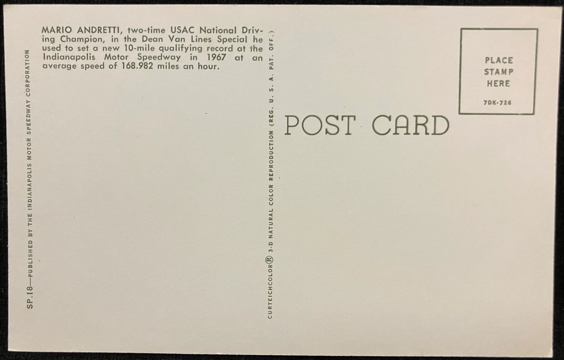 Mario Andretti - Indianapolis Motor Speedway - Indianapolis, Indiana - Vintage Racecar Postcard