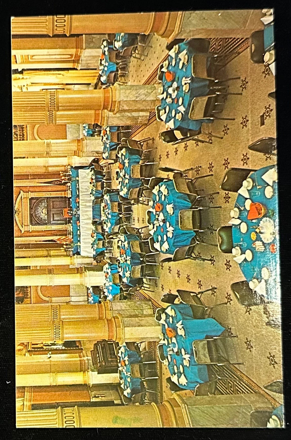 Back Information: Masonic Temple, Philadelphia, PA- The Grand Banquet Hall in the Masonic Temple in Center City, Philadelphia, seats 400 persons. Decorations in majestic room are of the Composite order of architecture.
