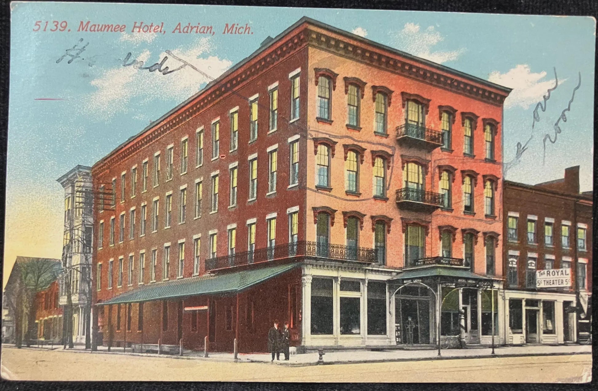 Maumee Hotel, Adrian, Michigan - Vintage Hotel Postcard
