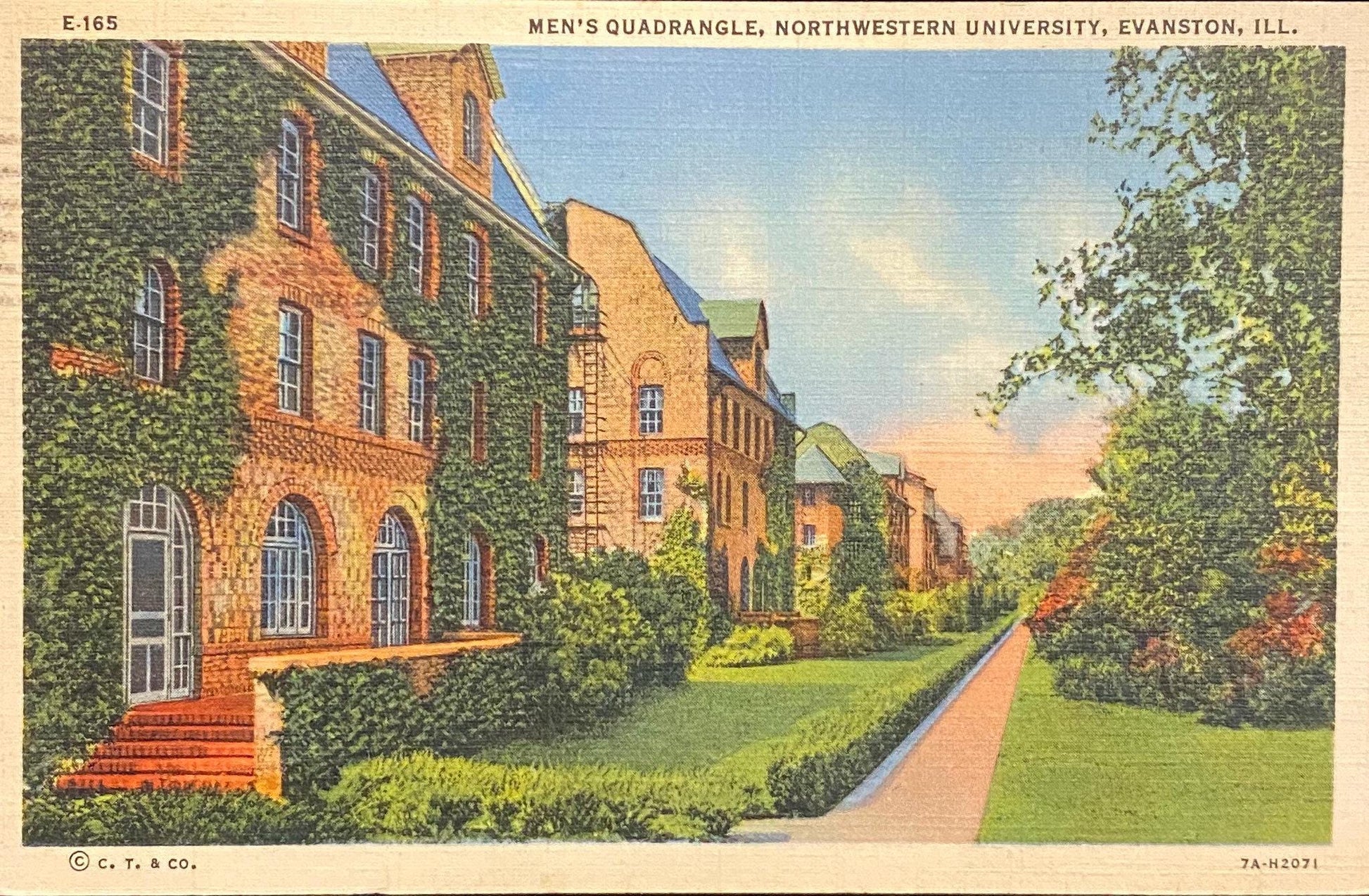 Men's Quadrangle, Northwestern University, Evanston, Illinois - 1937 Linen Postcard