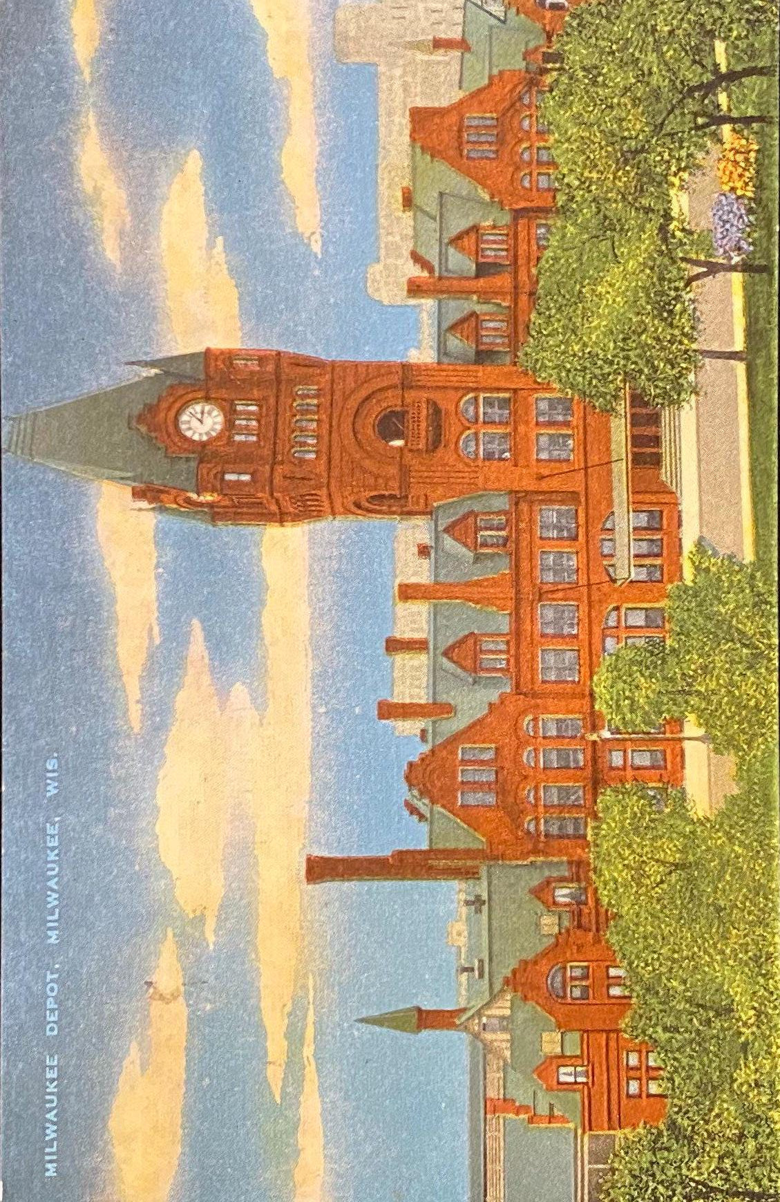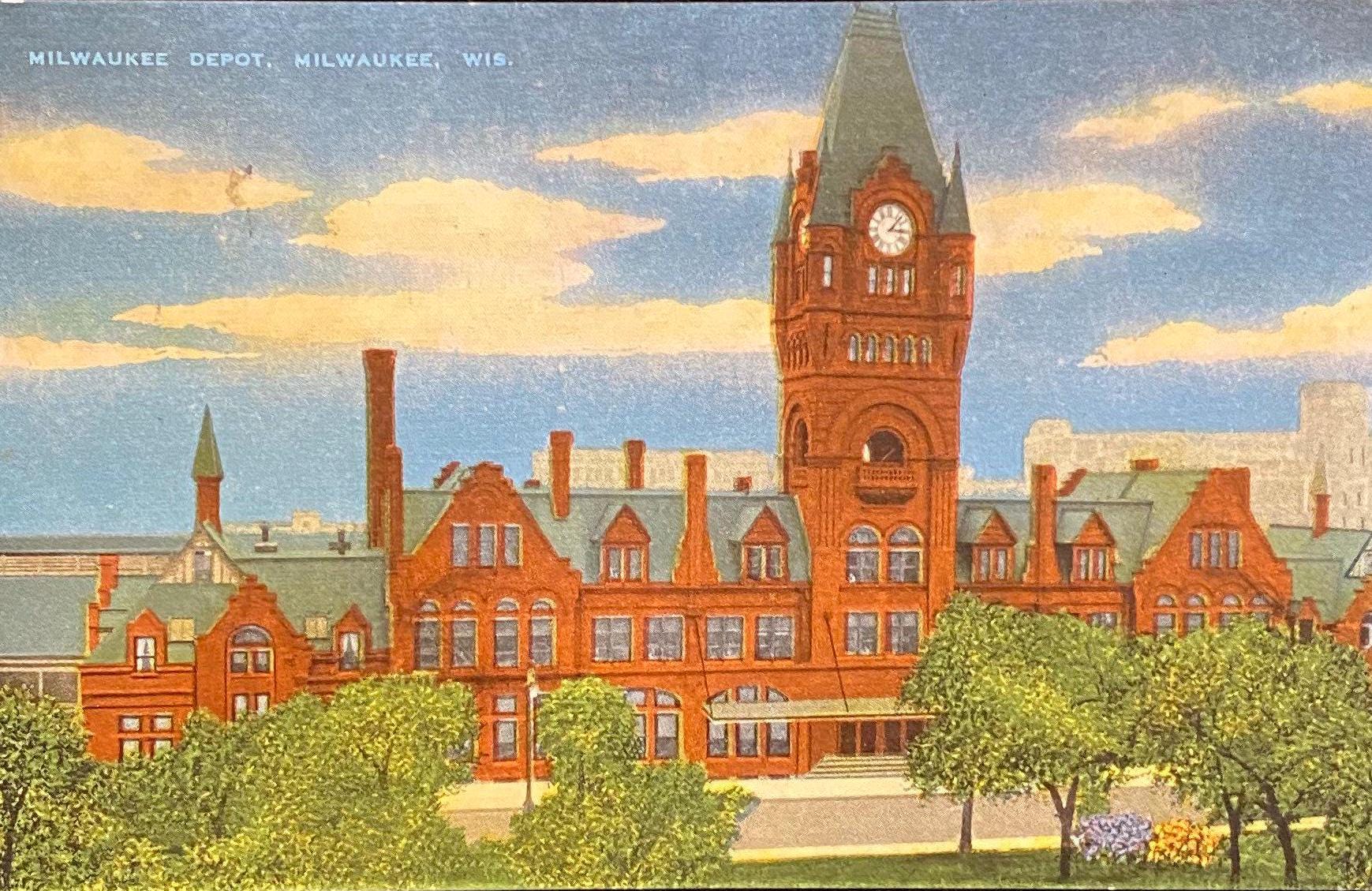 Front: Milwaukee Depot. Milwaukee, Wis. - 1940s Linen Postcard