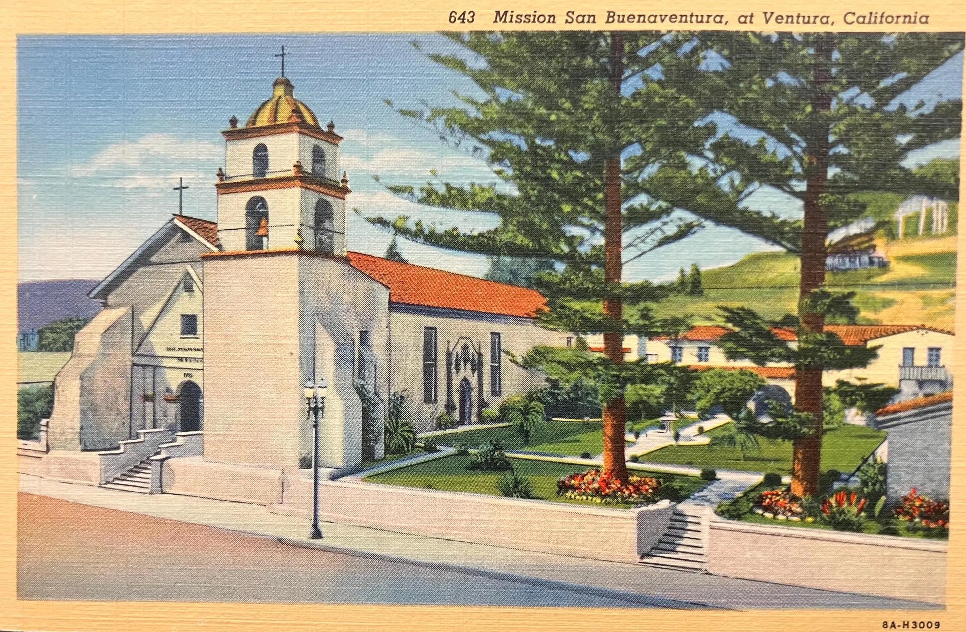 Mission San Buenaventura, at Ventura, California - Vintage Mission Postcard