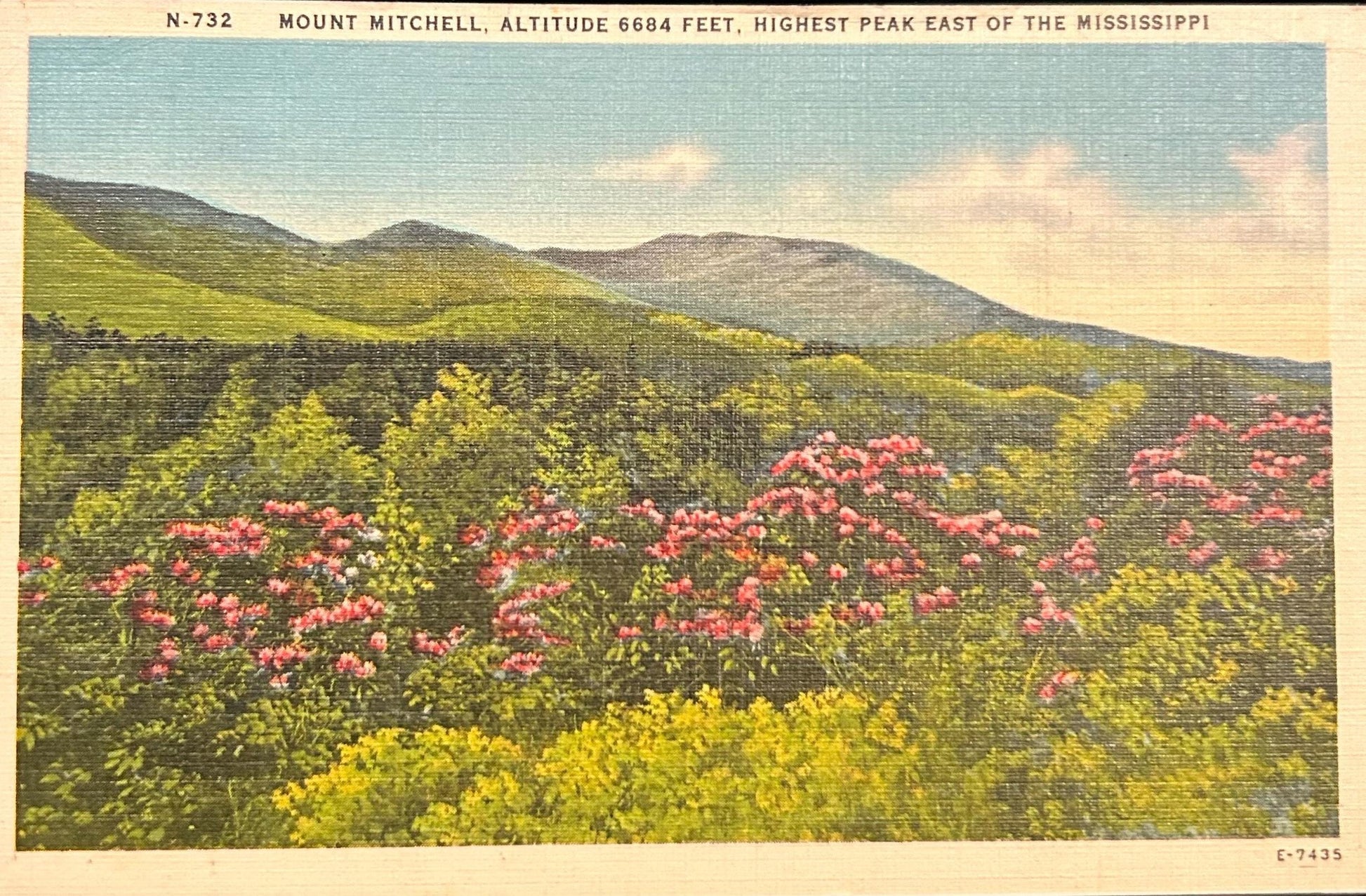 Mount Mitchell, Altitude 6684 Feet, Highest Peak East of the Mississippi - Linen Postcard