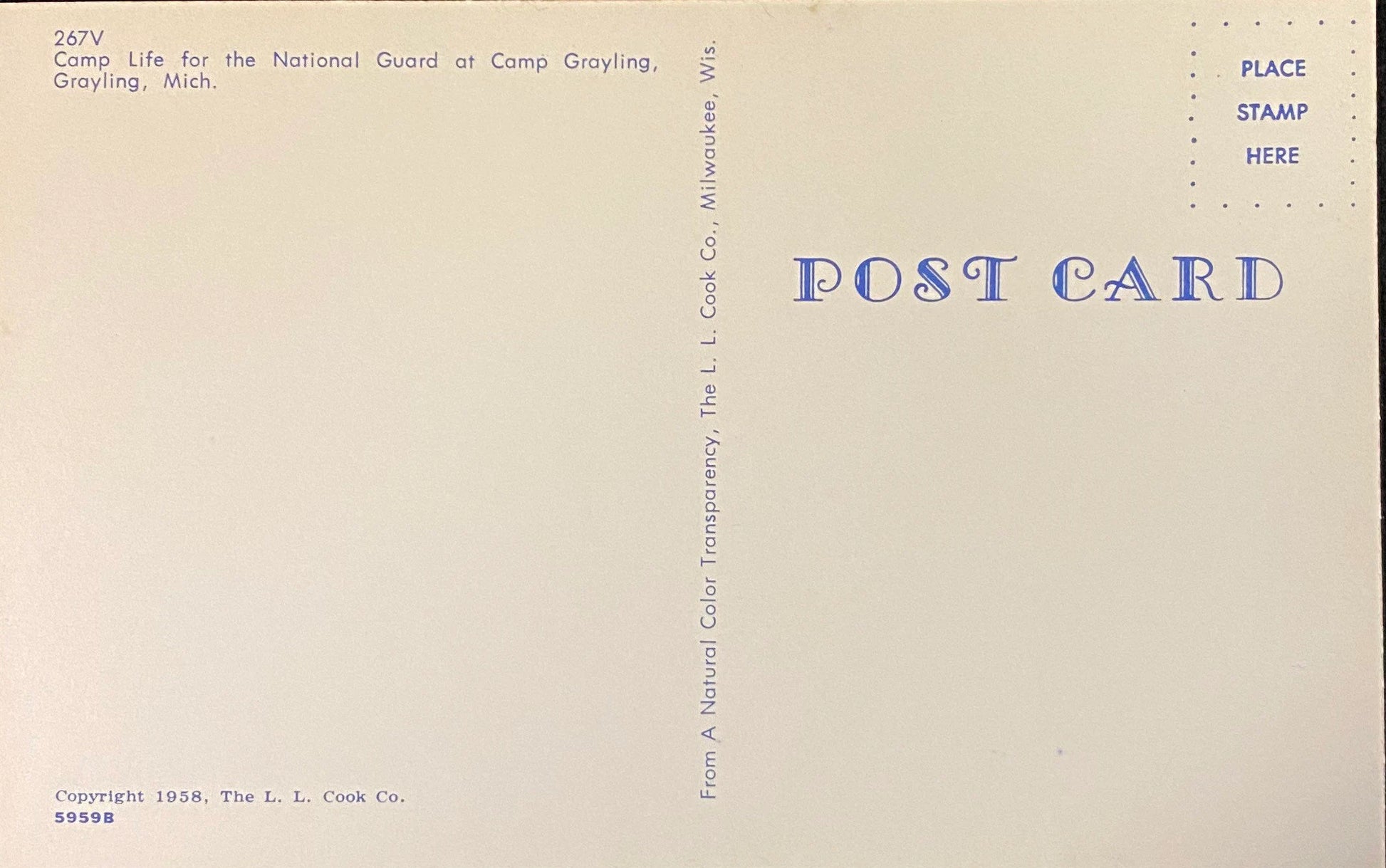 Back Text: "Camp Life for the National Guard at Camp Grayling, Grayling, Mich."