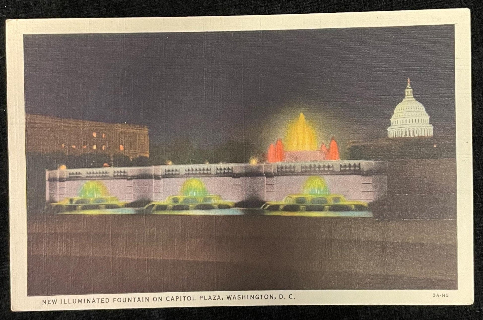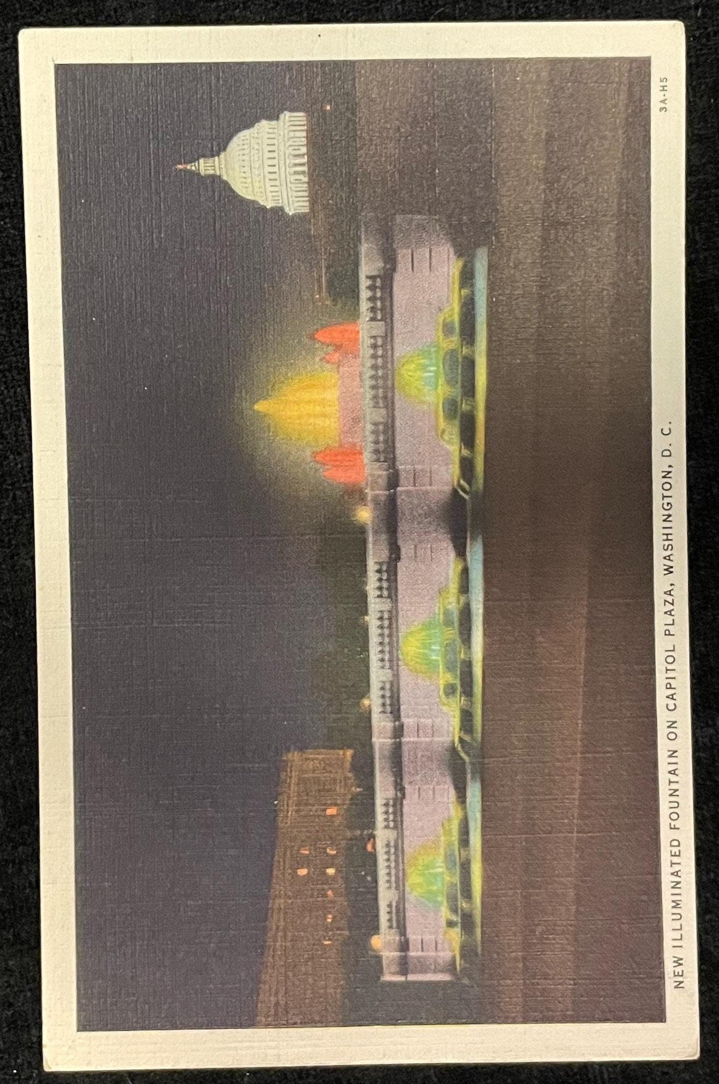 New Illuminated Fountain - Capitol Plaza - Washington D.C., Maryland - 1940s Linen Postcard