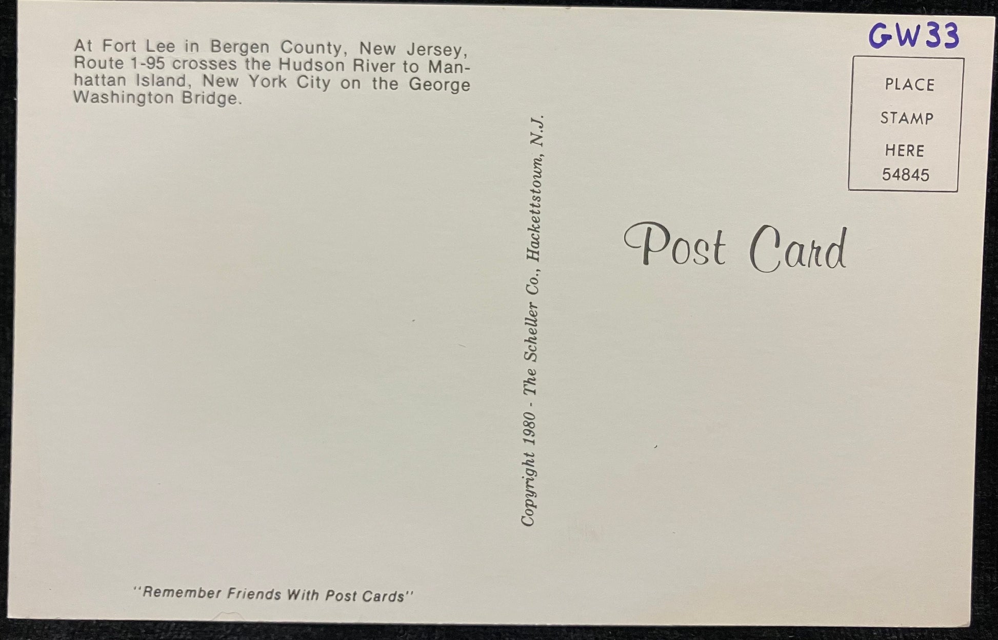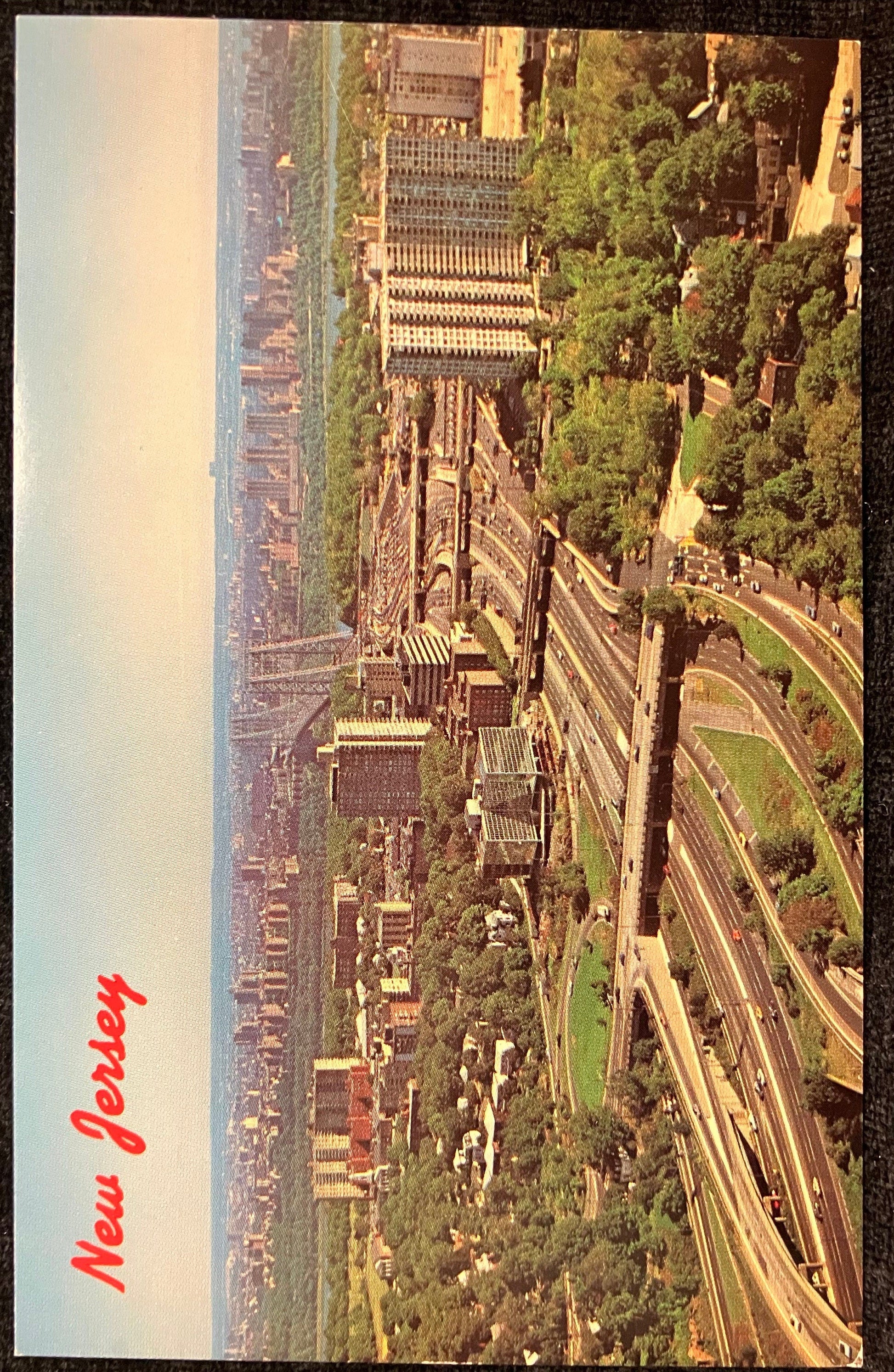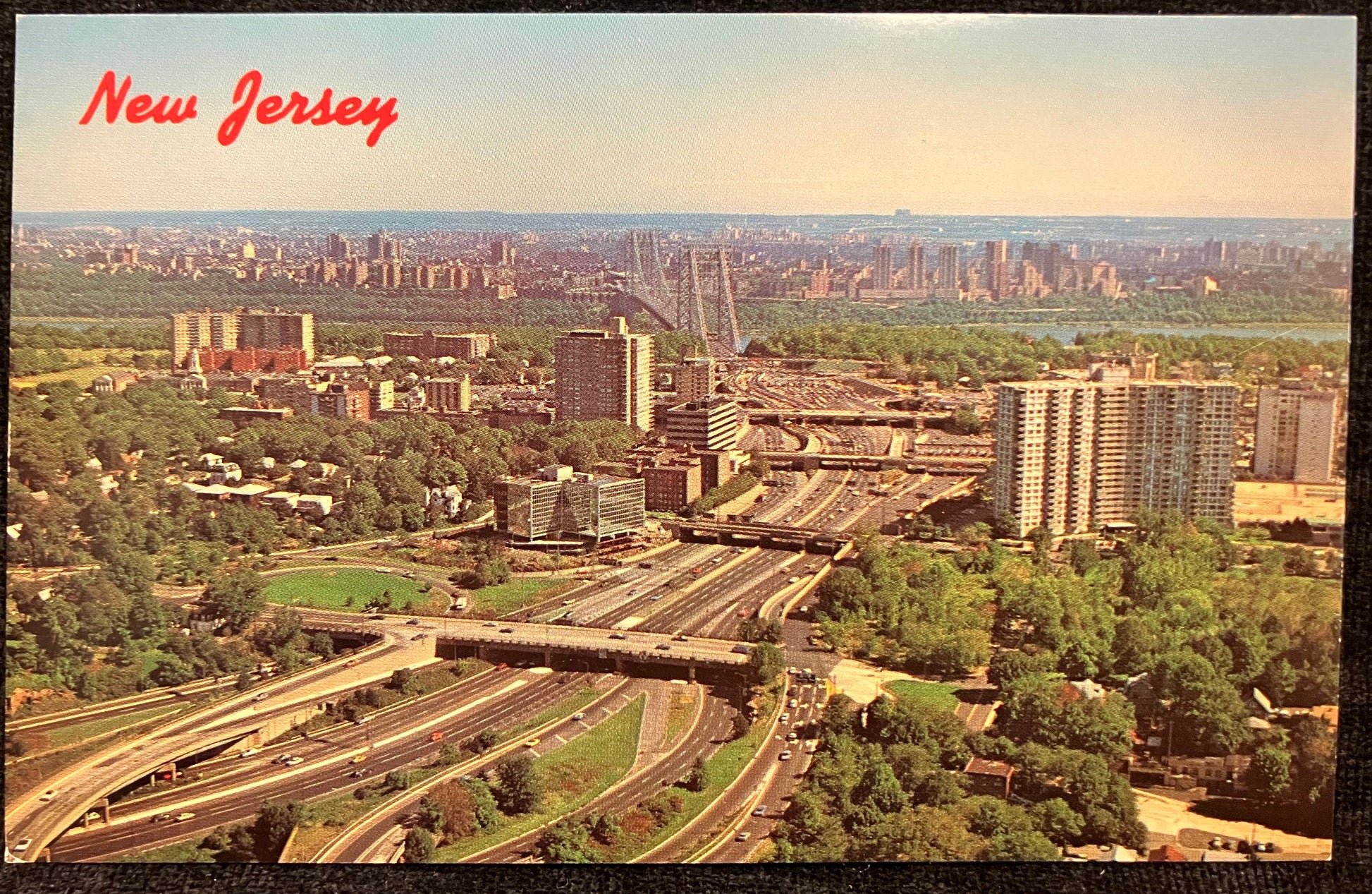 New Jersey - I-95 Crosses the Hudson from Bergen County to Manhattan, New York - Crossing the Hudson on George Washington Bridge - Vintage 1980s Highway Postcard