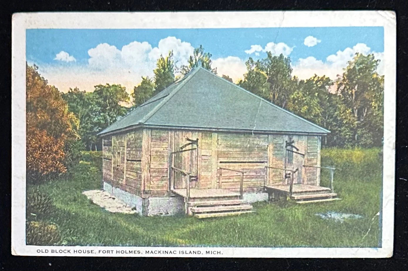 Old Block House, Fort Holmes, Mackinac Island, Michigan - Vintage Postcard