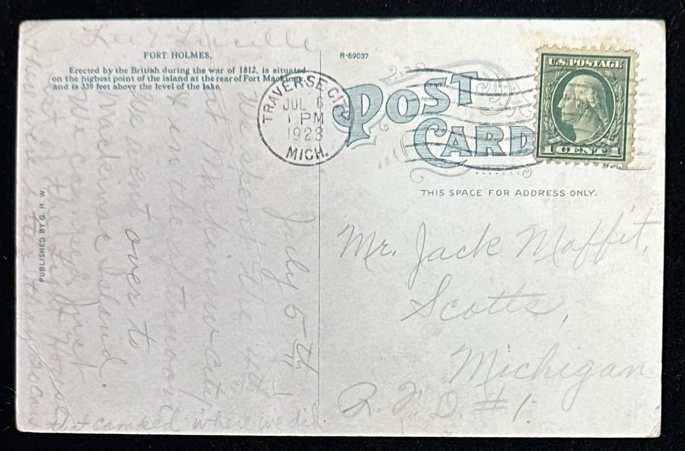 Mailed: Posted on July 6th, 1923 from Traverse City, Michigan with a green 1 cent George Washington stamp