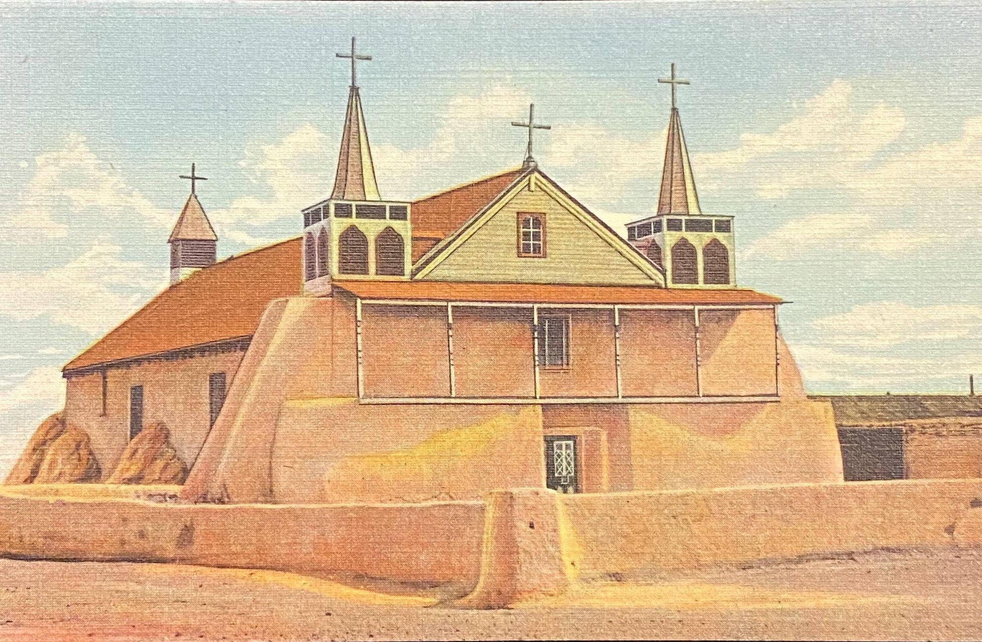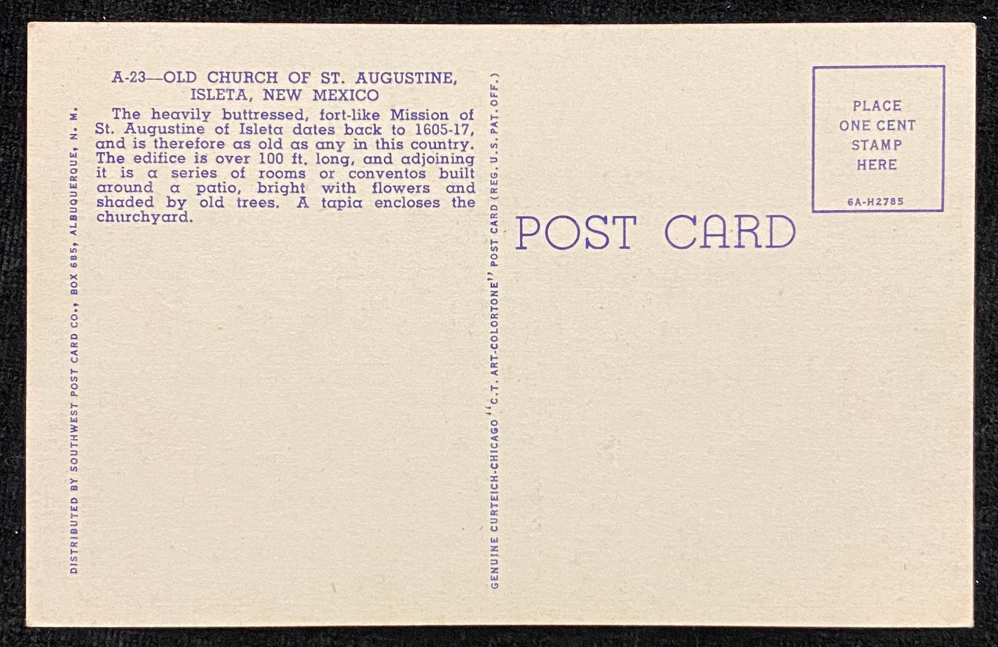 Old Church of St. Augustine - Isleta, New Mexico - 1936 Linen Postcard