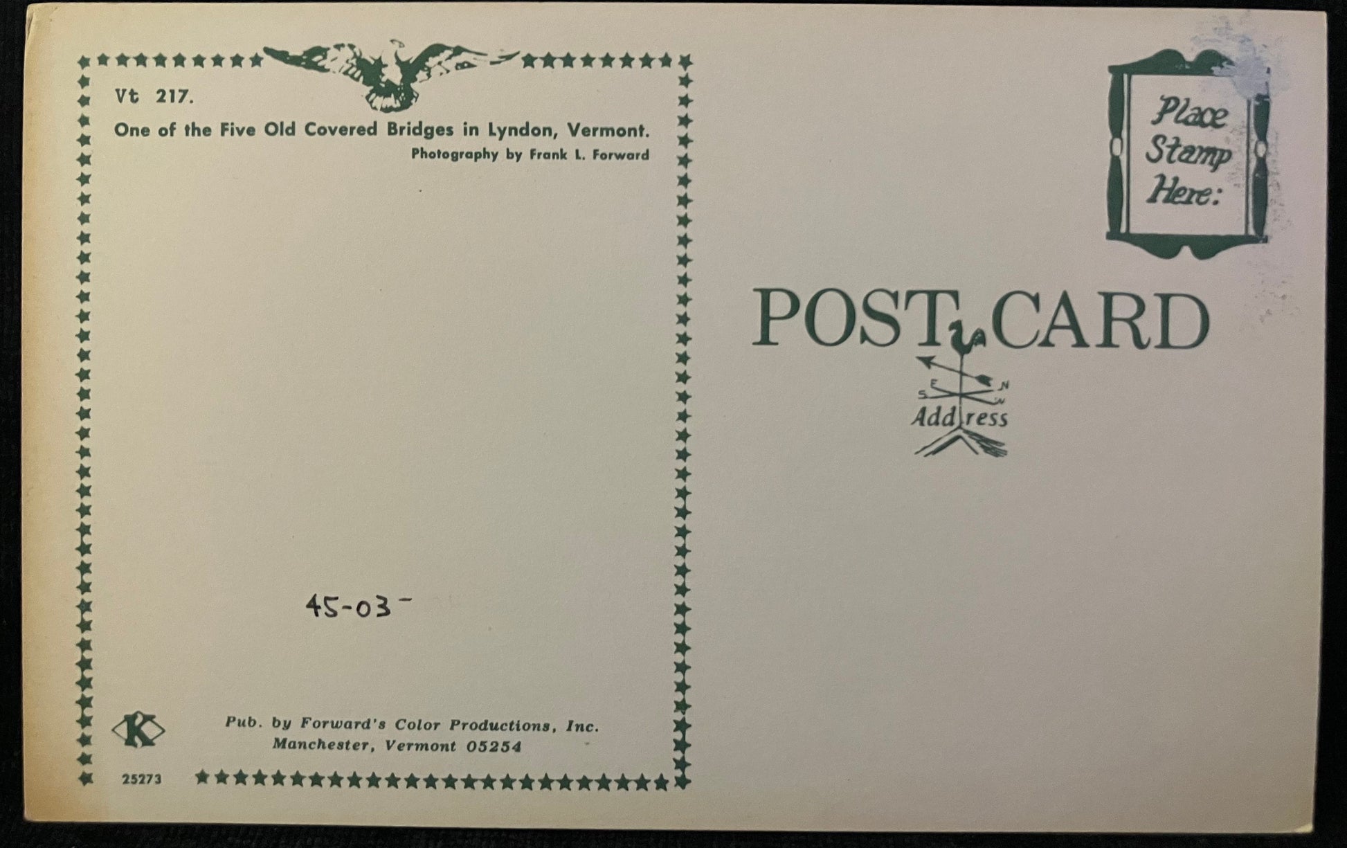 Front: Photo of an Old Covered Bridge in Lyndon, Vermont