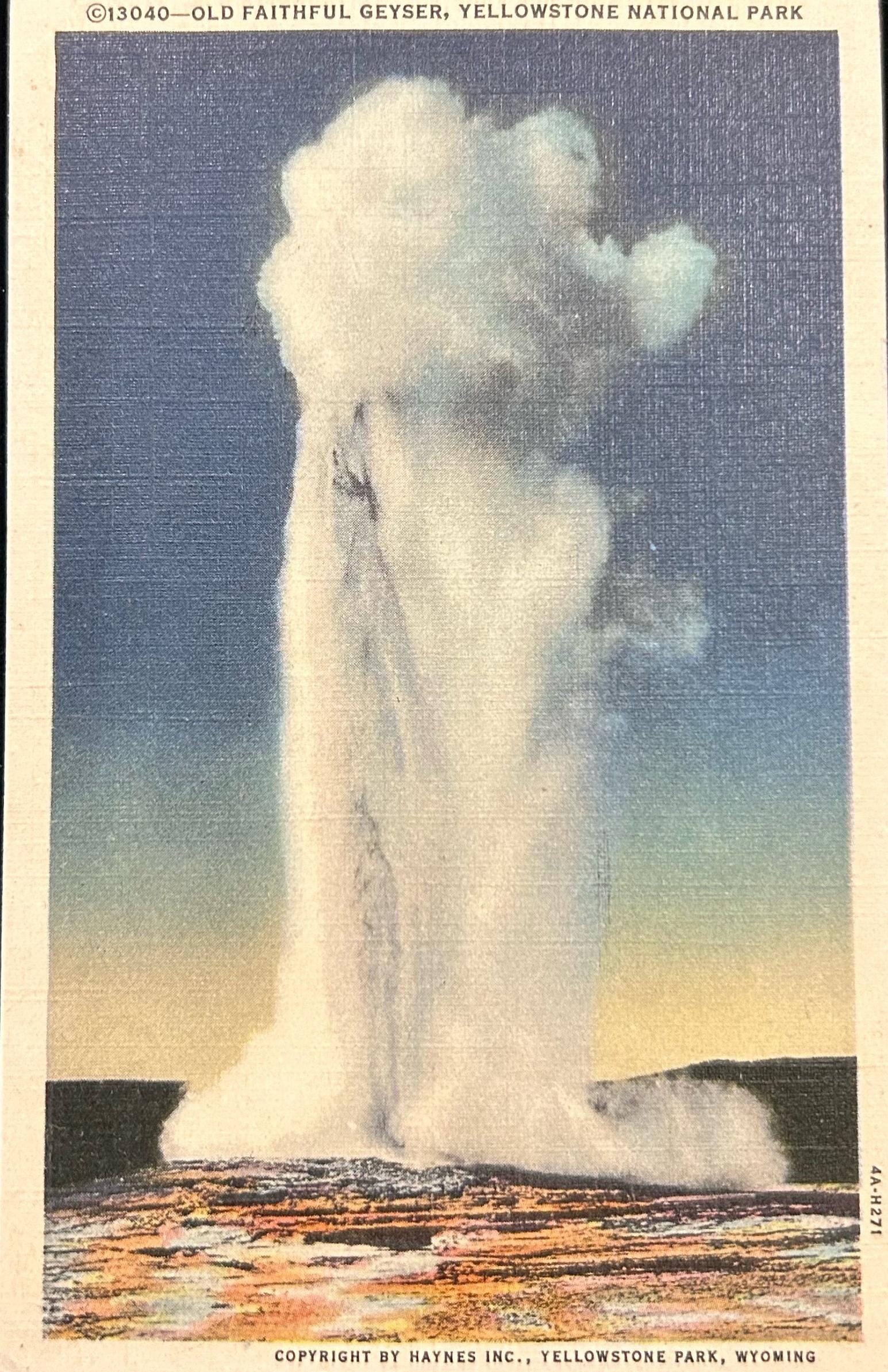 Old Faithful Geyser, Yellowstone National Park, Wyoming - Linen Postcard