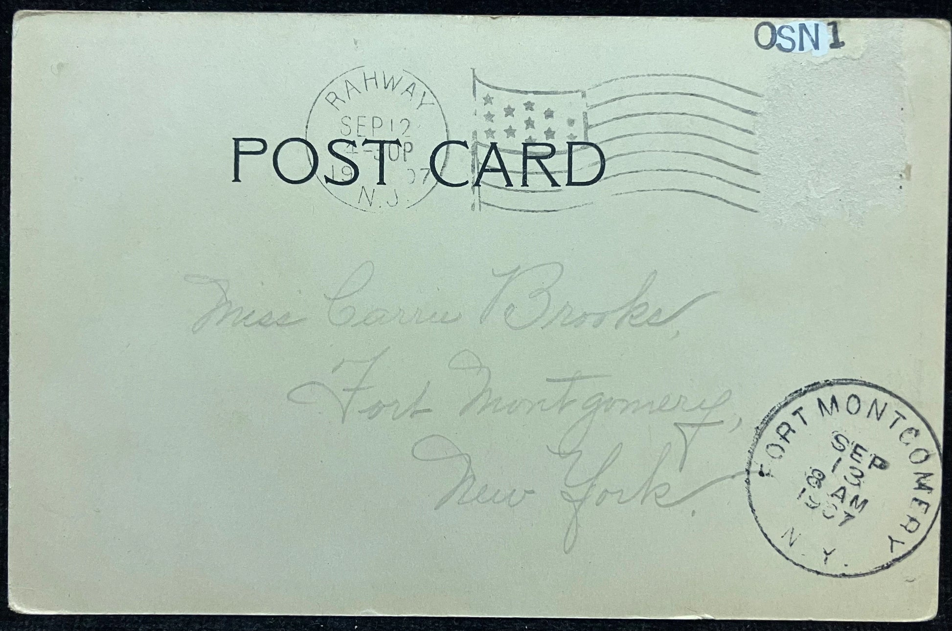 Mailed: Postmark from Rahway, N. J. and Fort Montgomery, N. Y. in 1907 with the stamp removed