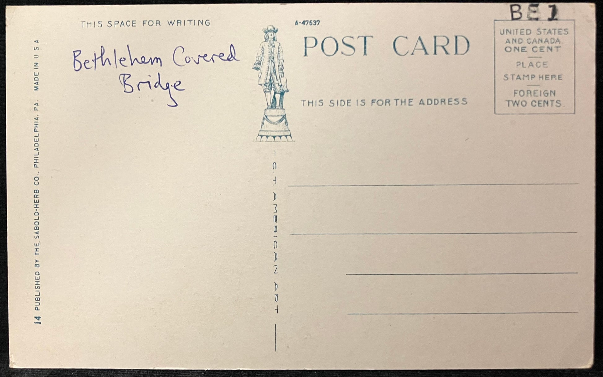 On front: Old Wooden Bridge Over Lehigh RIver, Bethlehem, PA