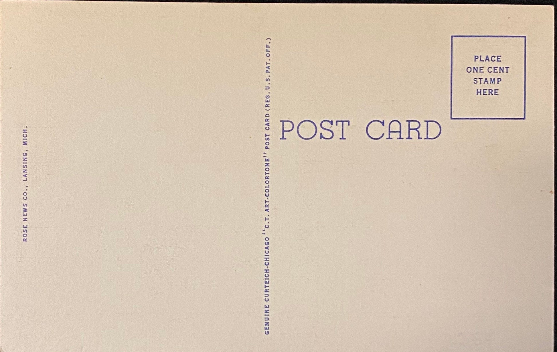 This Cur Teich linen postcard depicts Olds Hall, a building at Michigan State University. This postcard is in great condition and would be perfect for an MSU alumni to have!