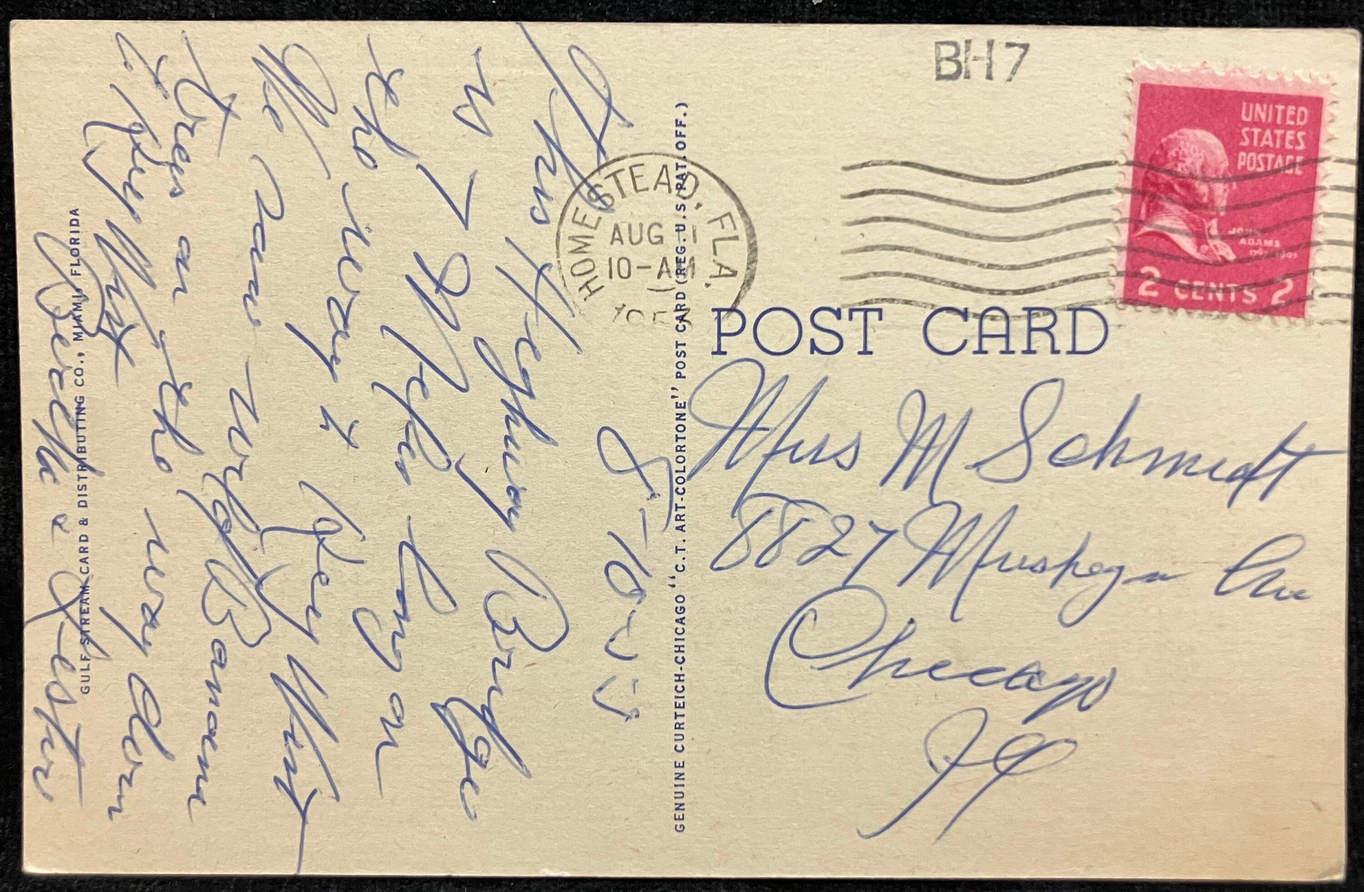 Mailed: Postmark: 1953 Homestead, Fla. red two-cent John Adams stamp